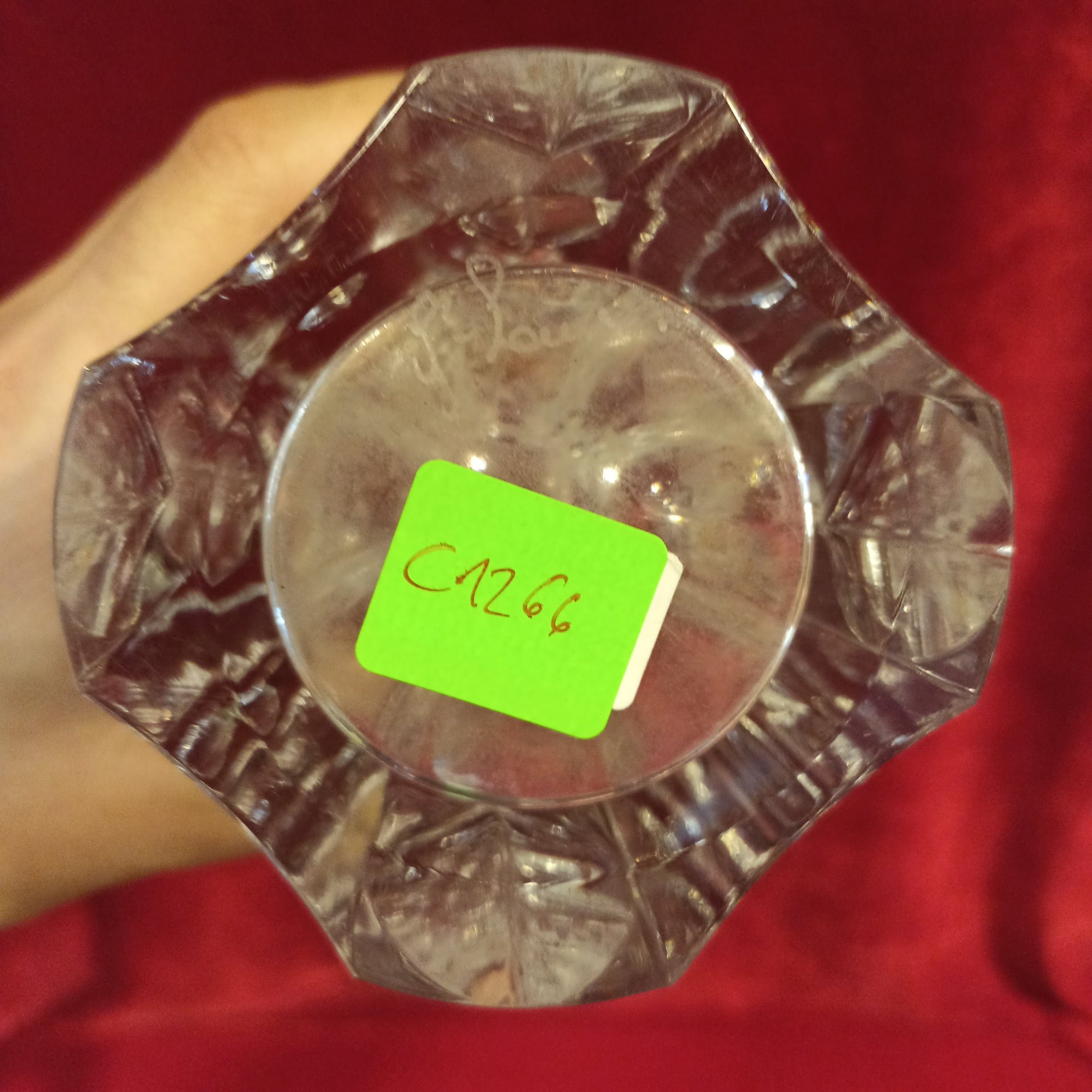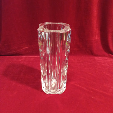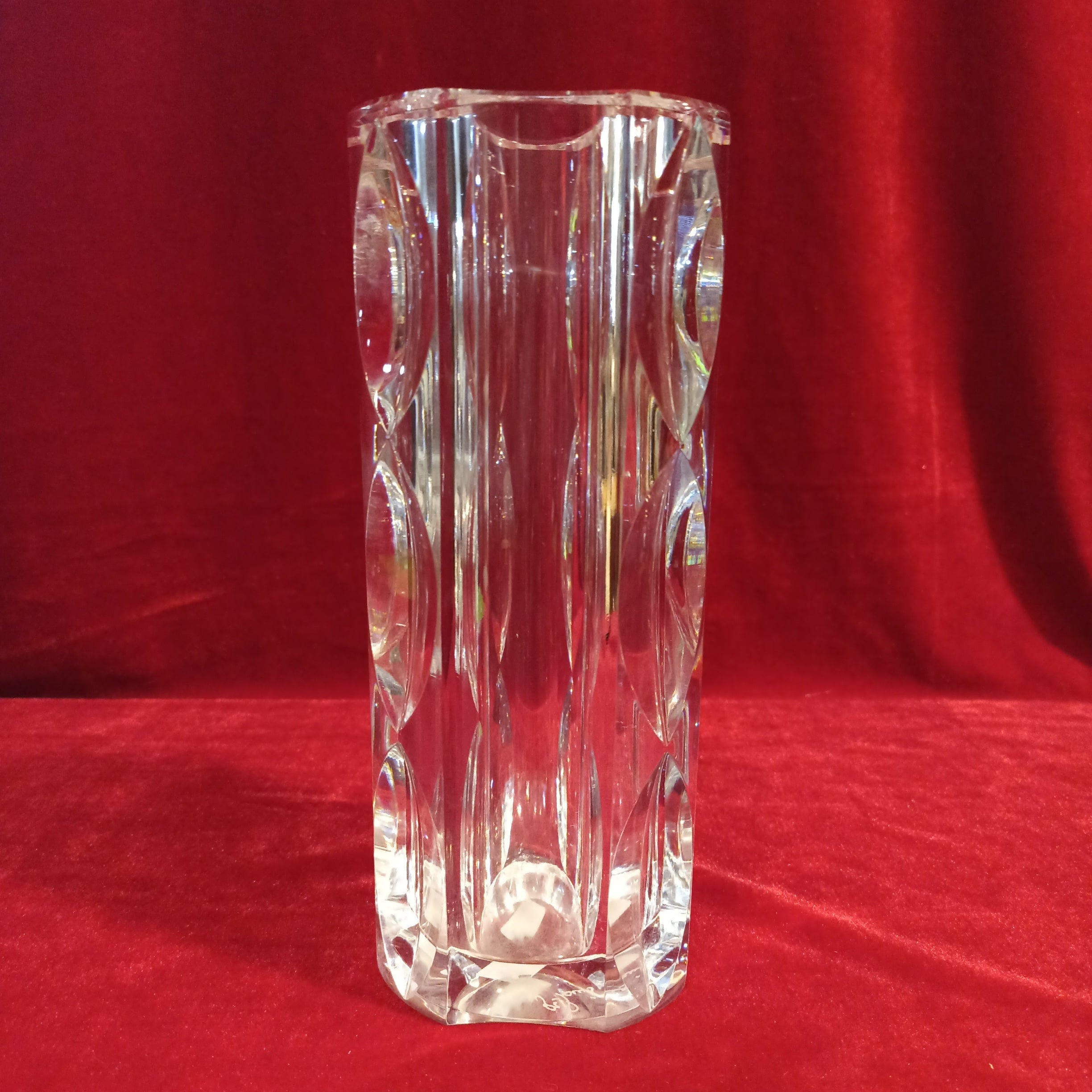 Elegante florero de marca Saint Louis, con diseño acanalado y alargado.