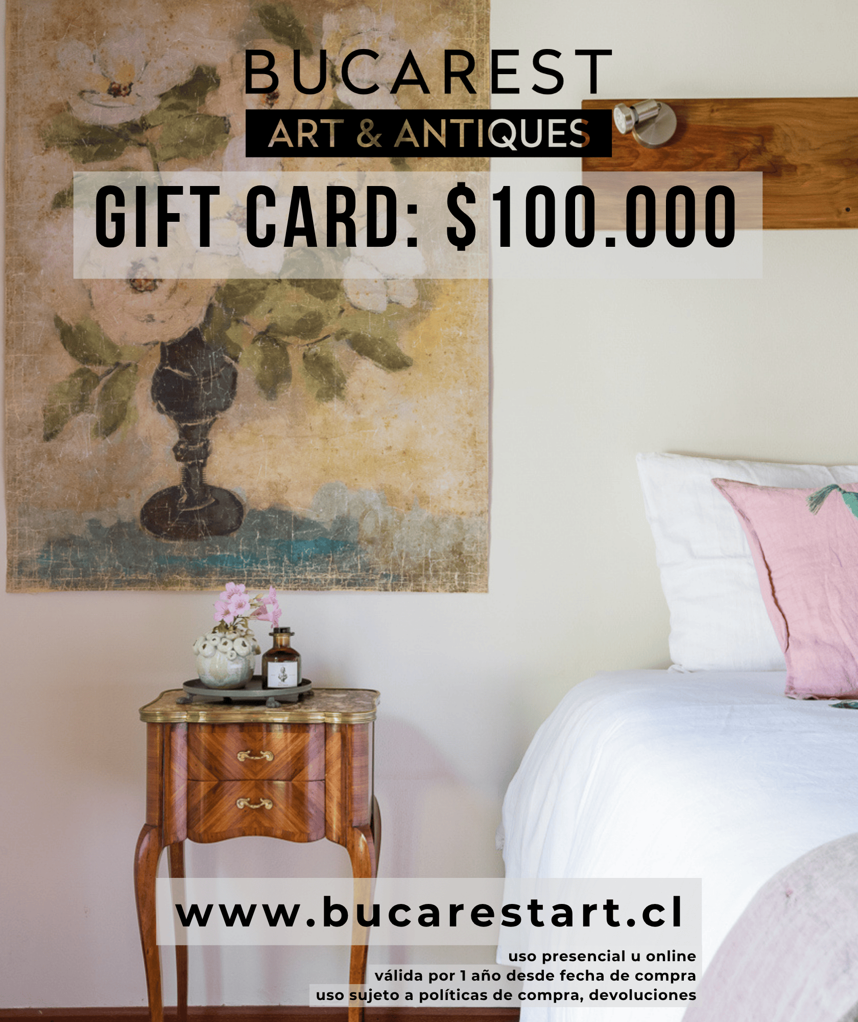 Regala la experiencia de descubrir piezas únicas en Bucarest Art & Antiques. Nuestra Gift Card Básica de $100.000 permite que tus seres queridos exploren nuestra selecta colección de arte y antigüedades, eligiendo exactamente lo que desean. Perfecta para coleccionistas, amantes del arte y decoradores que aprecian la autenticidad y la elegancia. Una invitación a sumergirse en el mundo del arte sin límites predeterminados.