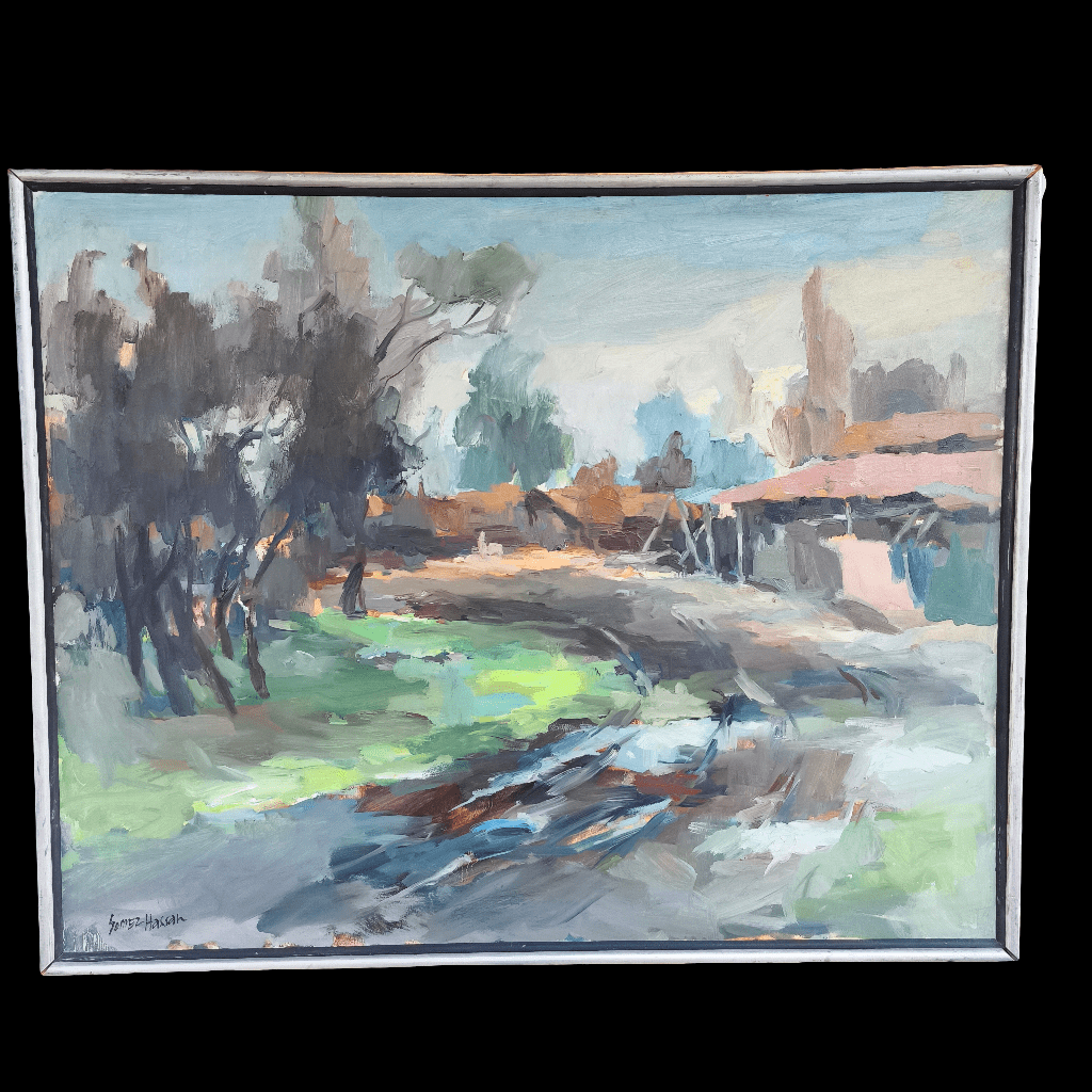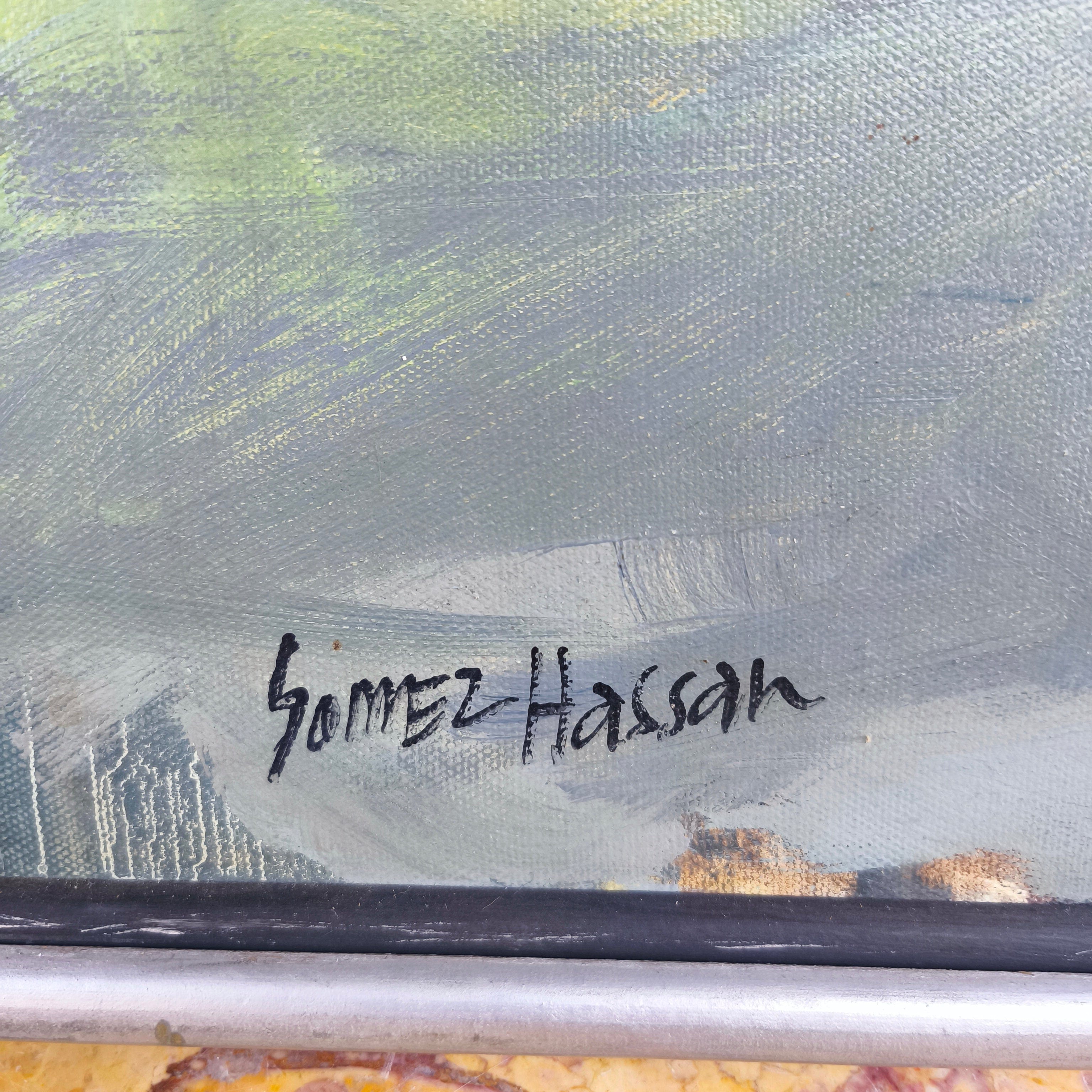 Oleo sobre tela del destacado artista nacional Manuel Gómez Hassan pintor e ilustrador. Nació en Santiago, Chile, el 16 de octubre de 1924. Estudió en la Escuela de Bellas Artes de la Universidad de Chile.