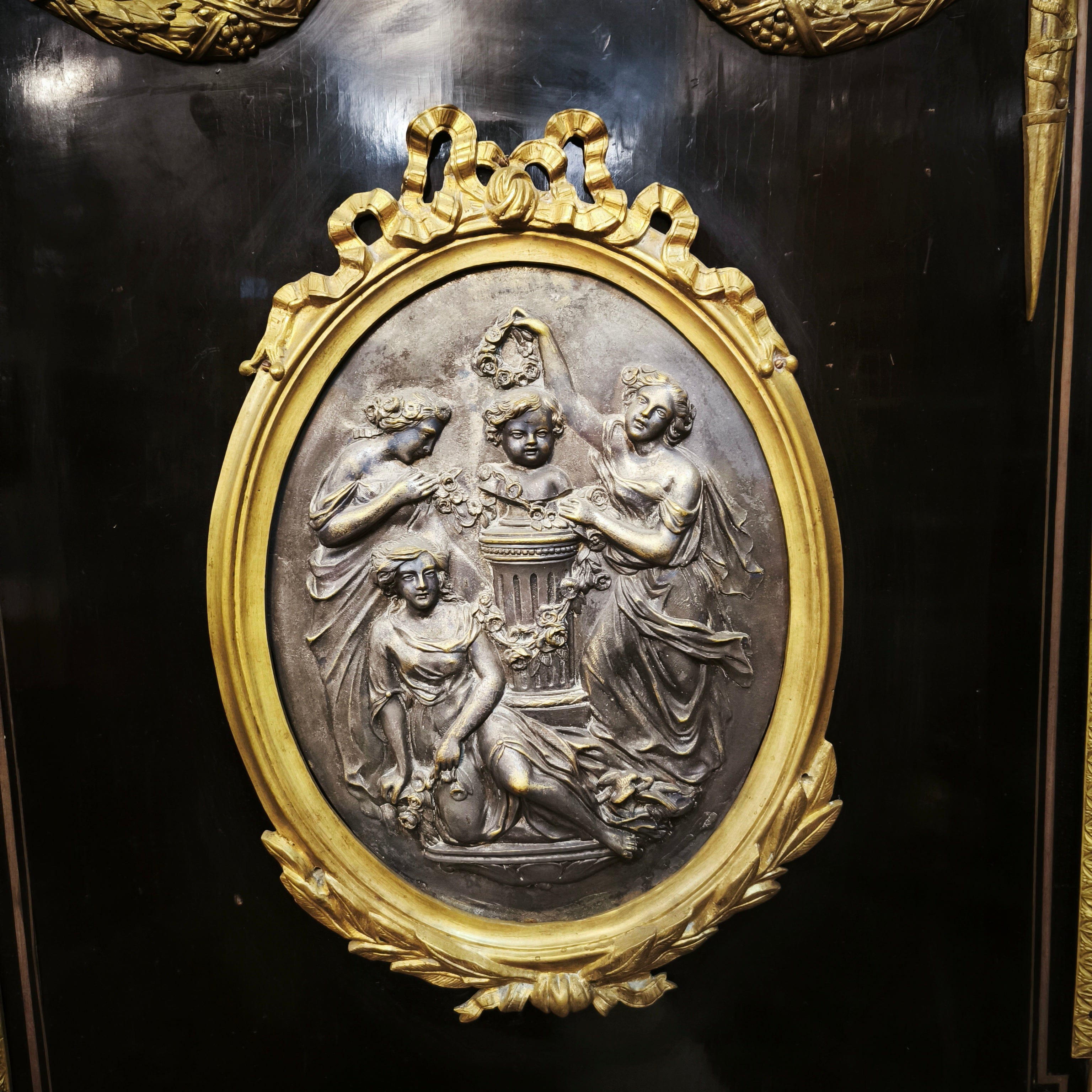 Gran boulle francés estilo imperio medallón de bronce