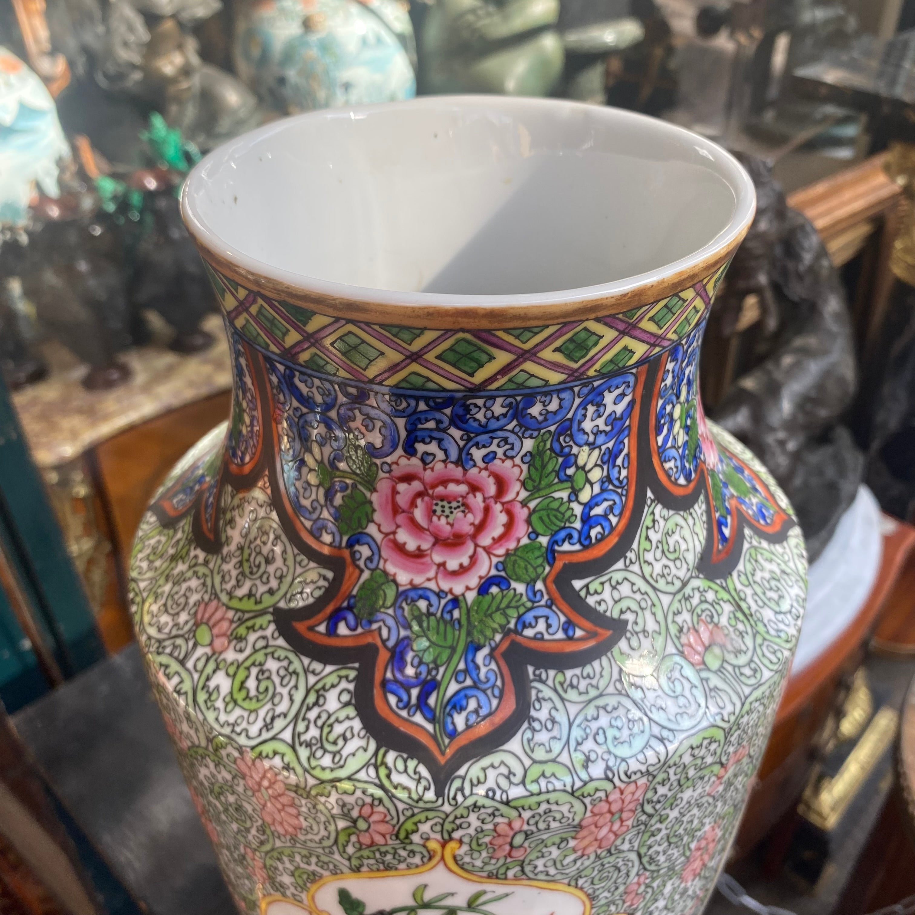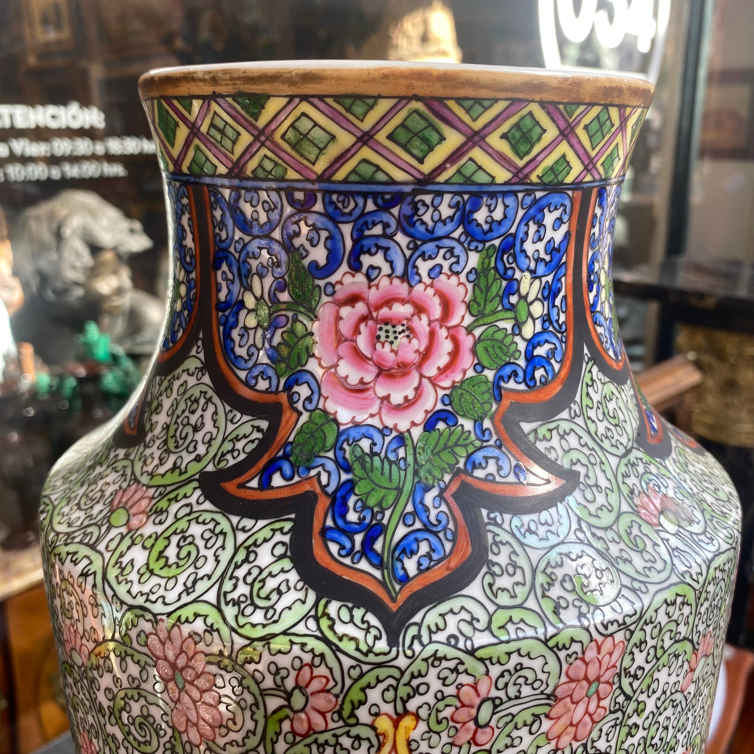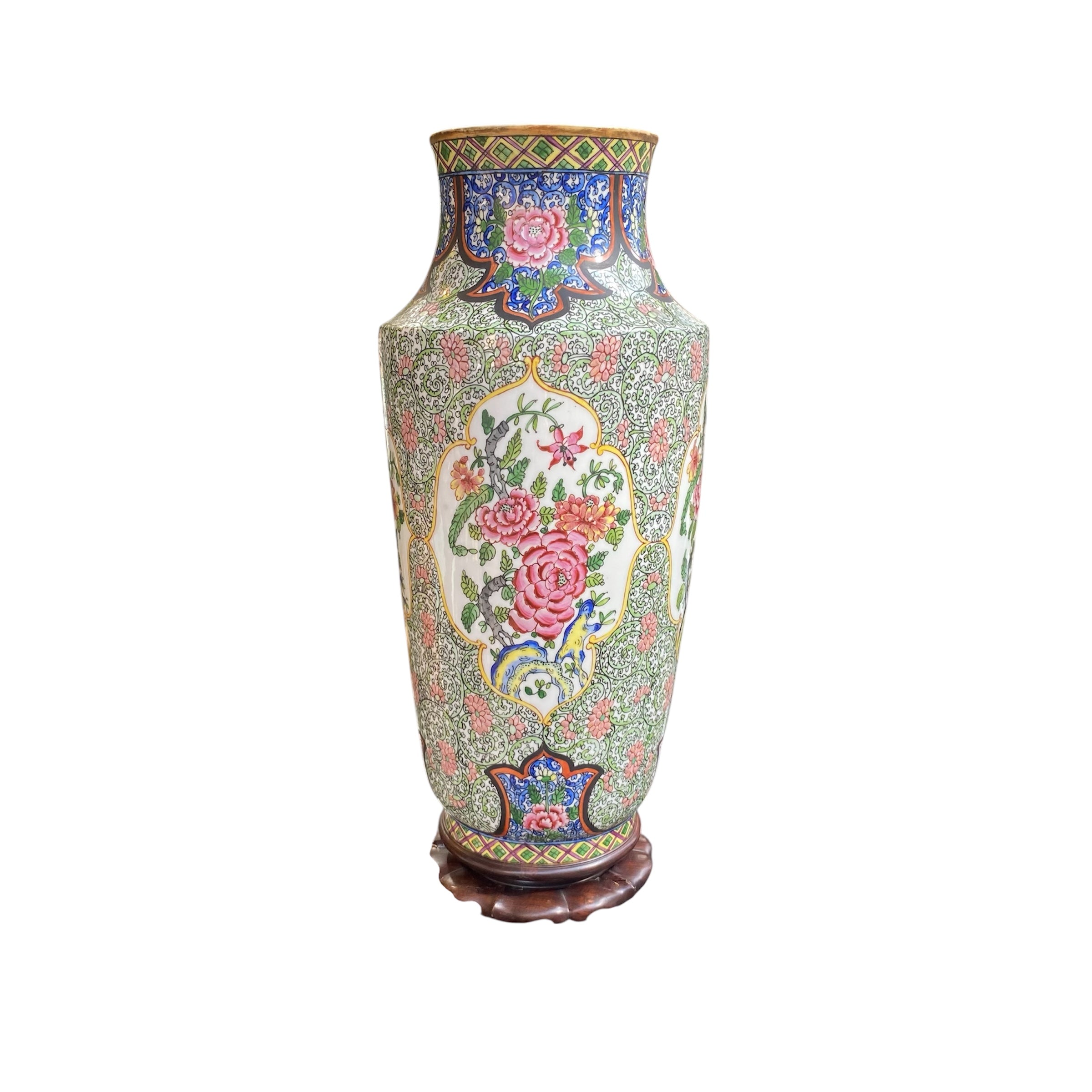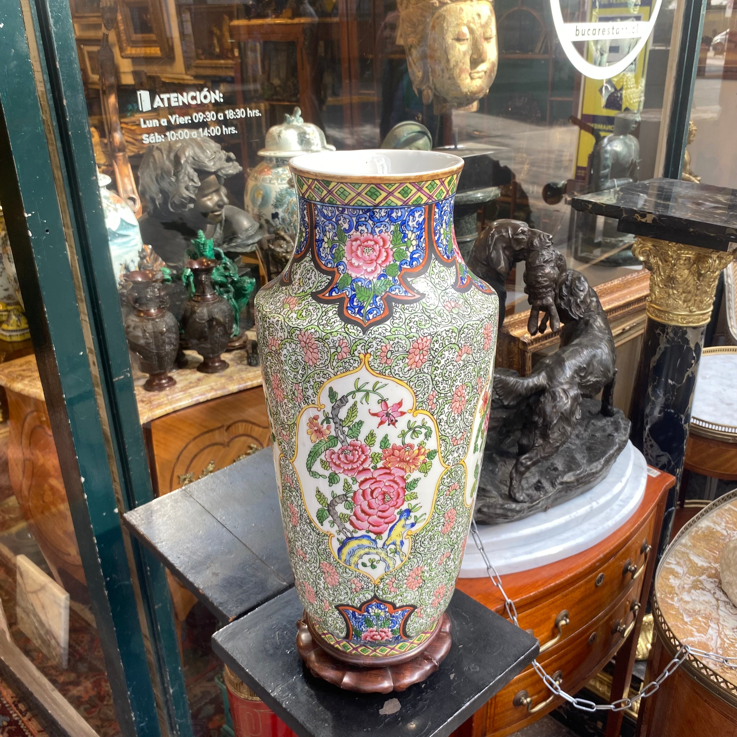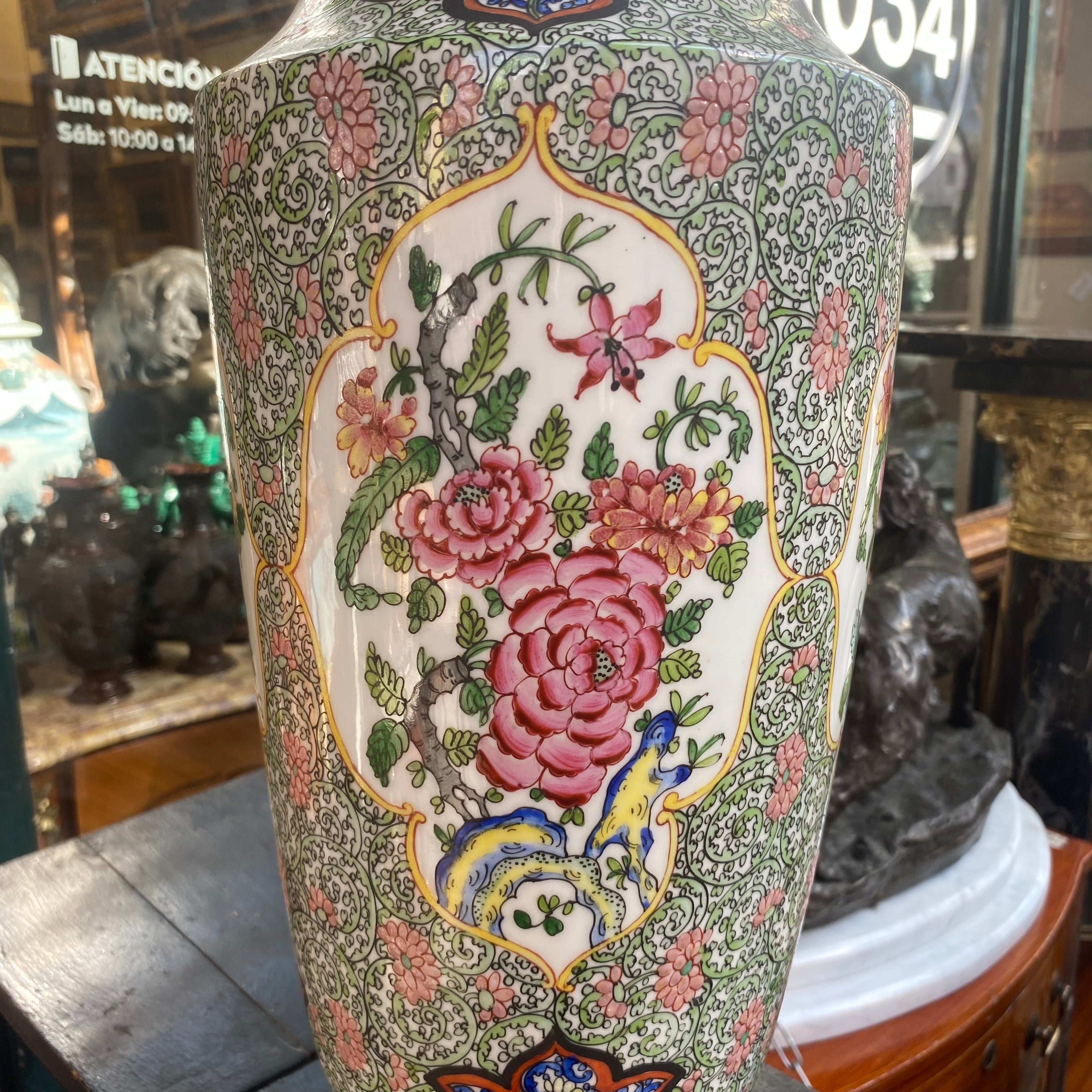 Gran jarrón chino de porcelana flores y aves