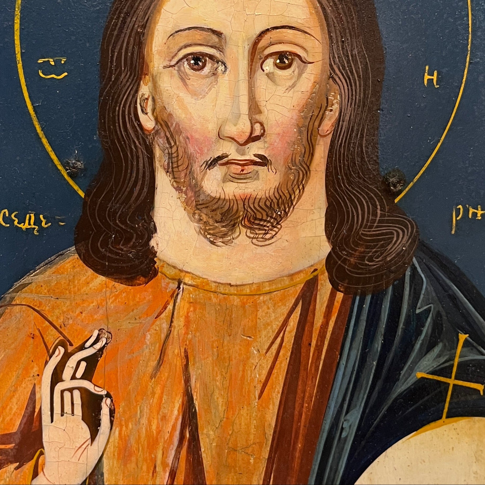 Ícono ruso pintado en madera 'Cristo Pantocrátor' comienzos s.XX
