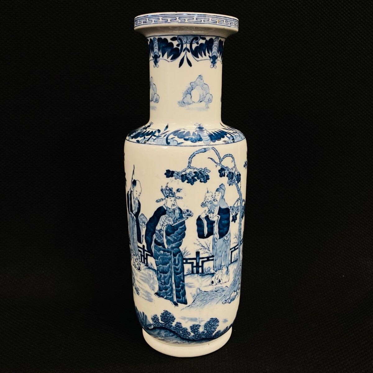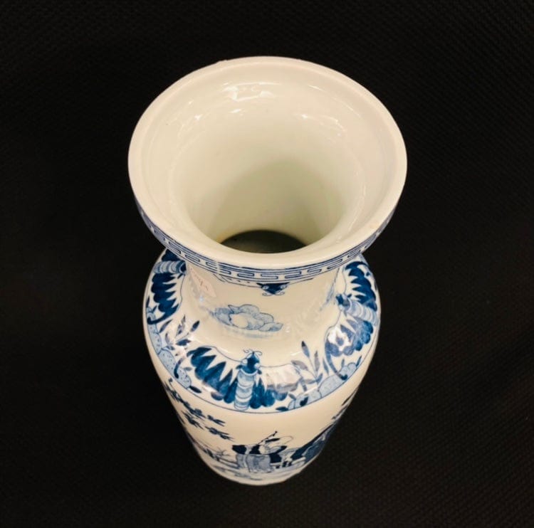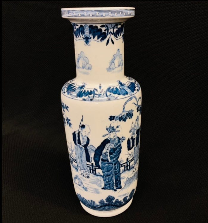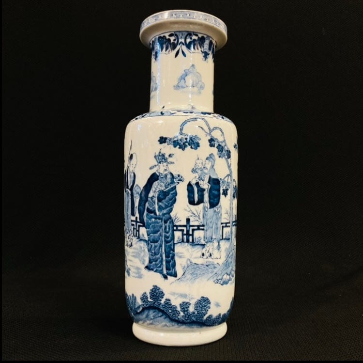 Jarrón chino porcelana blanca y azul 'Sabios'