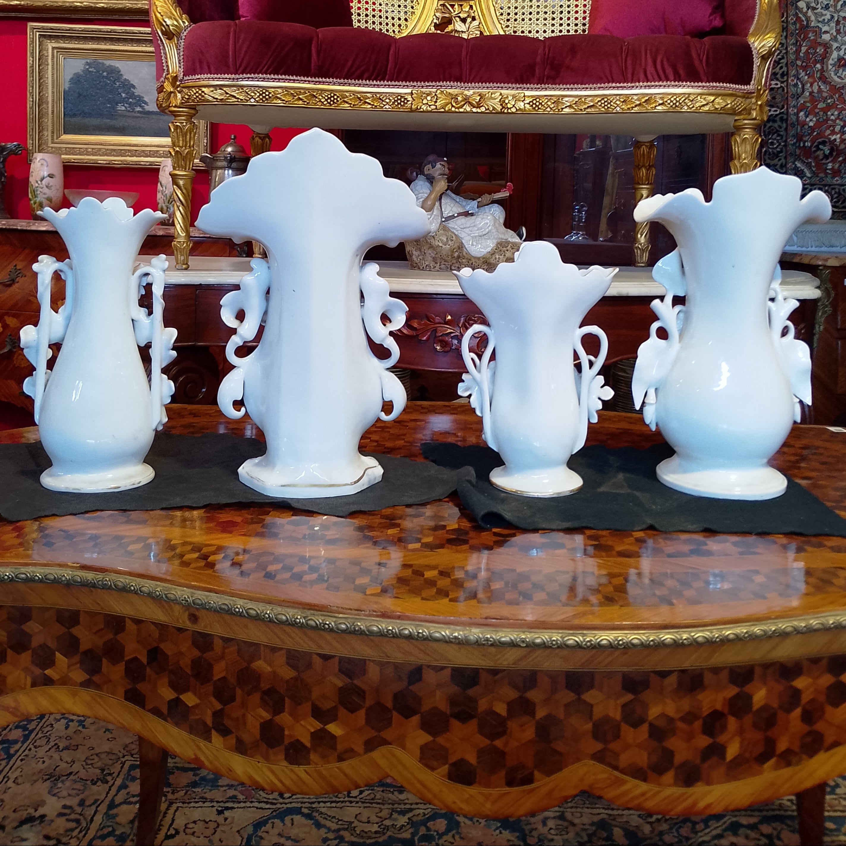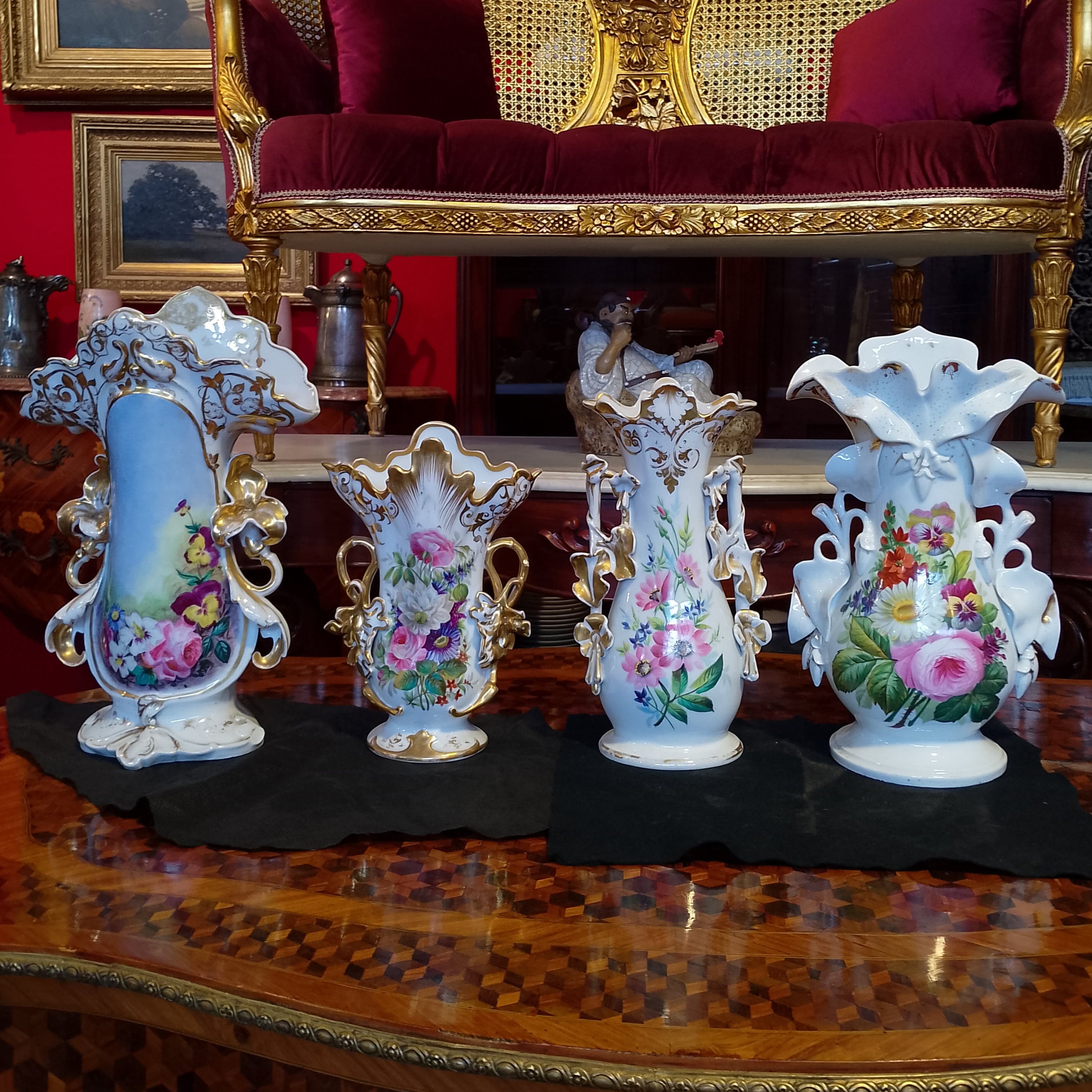 Hermoso jarrón isabelino Vieux Paris, pintado a mano, con un diseño floral en que predominan los colores vivos y el dorado, dando luminosidad y elegancia a su ambiente.