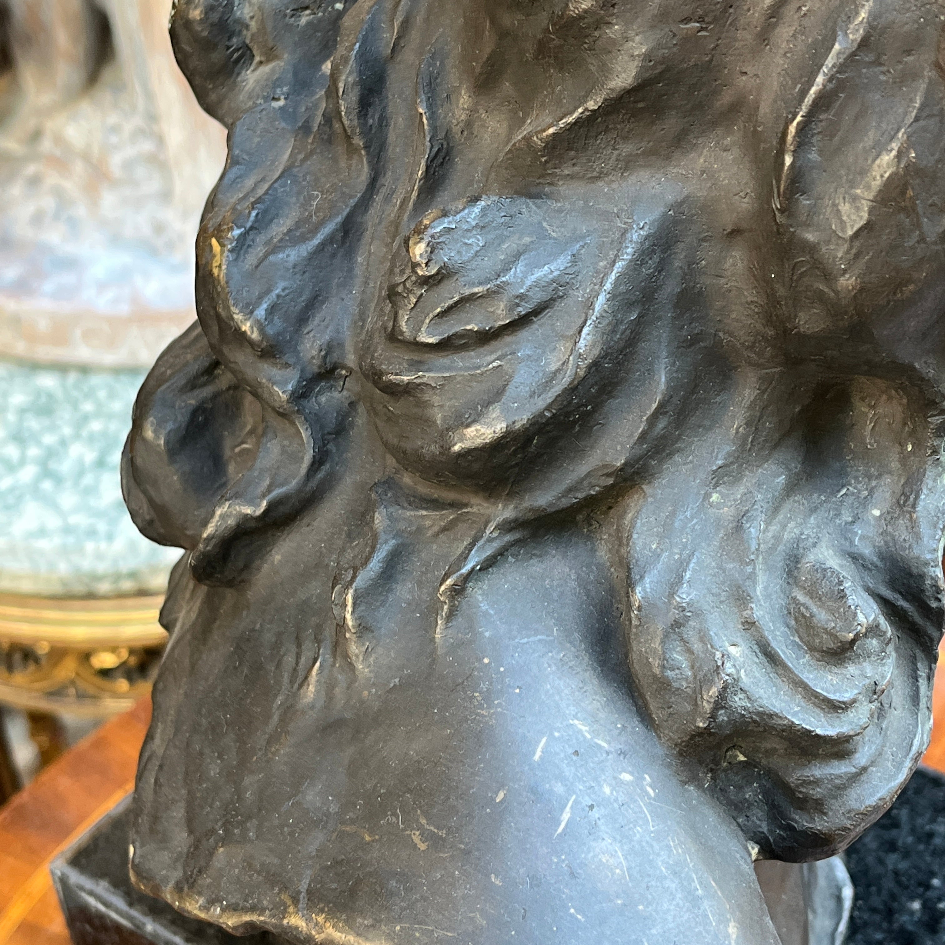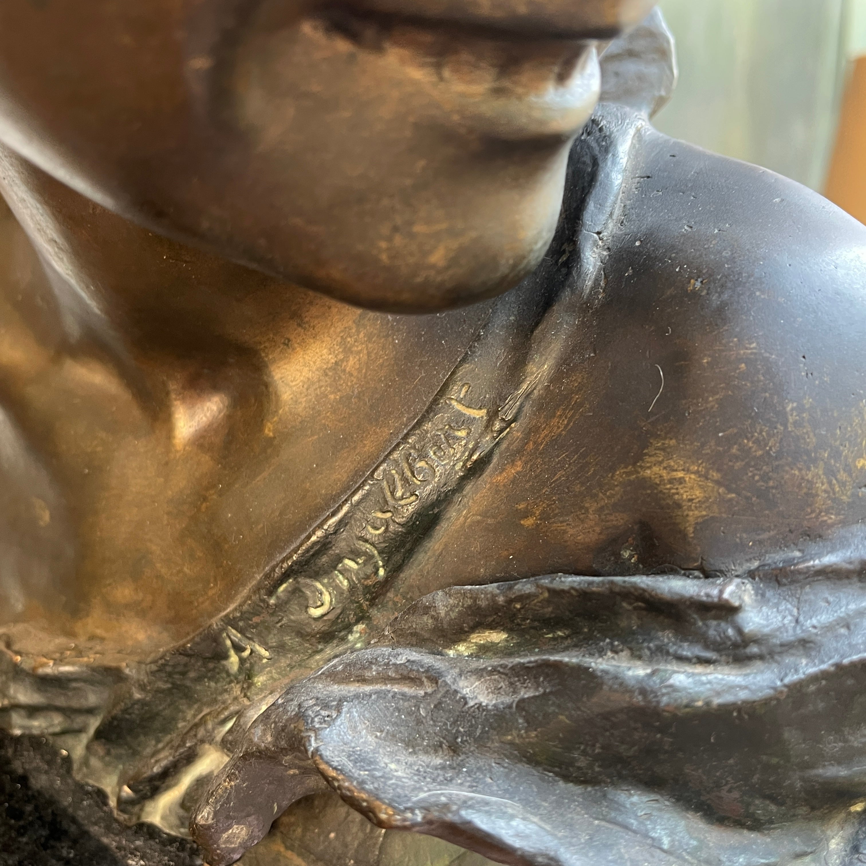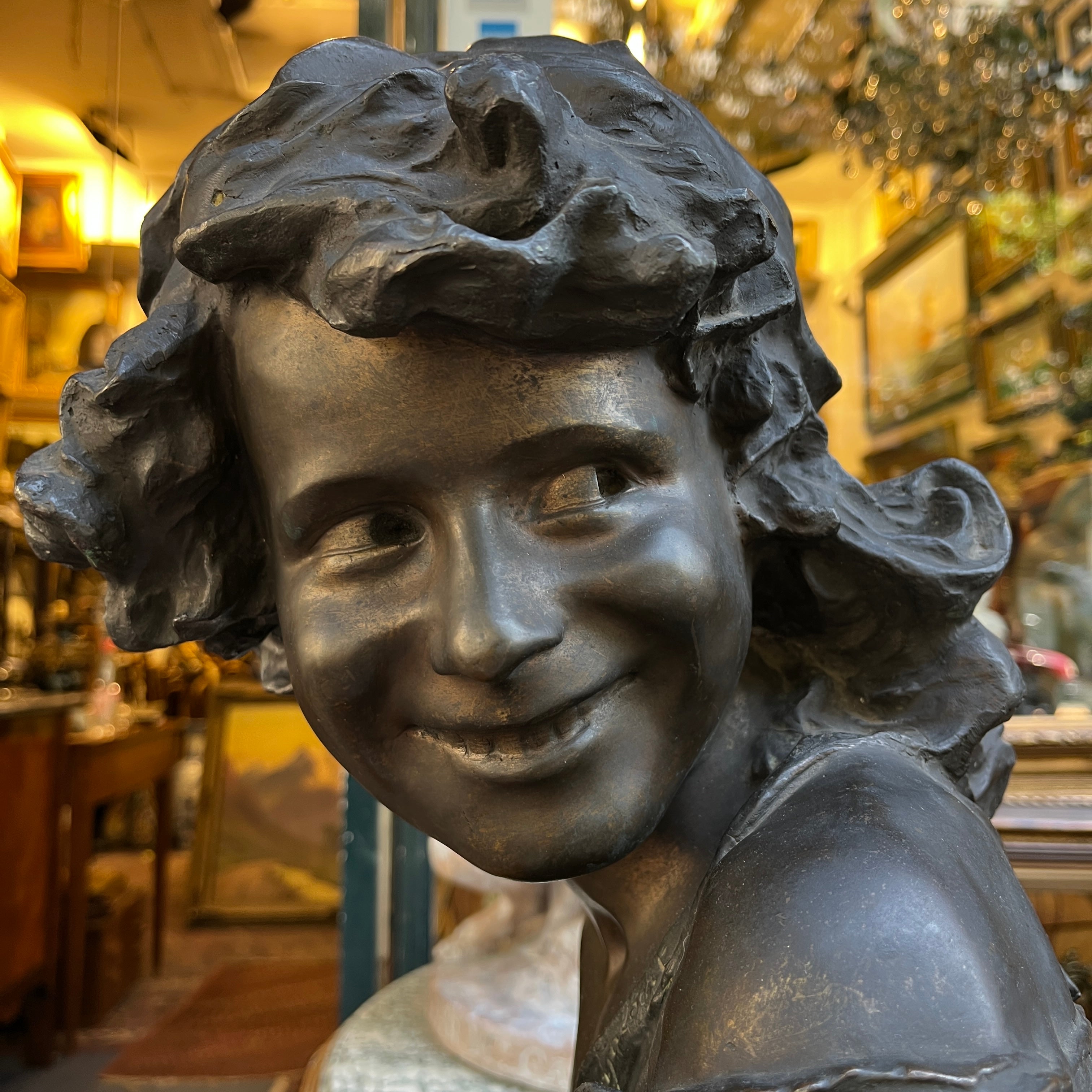 Jean Antoine Injalbert - Escultura francesa busto de niña en bronce y base de mármol