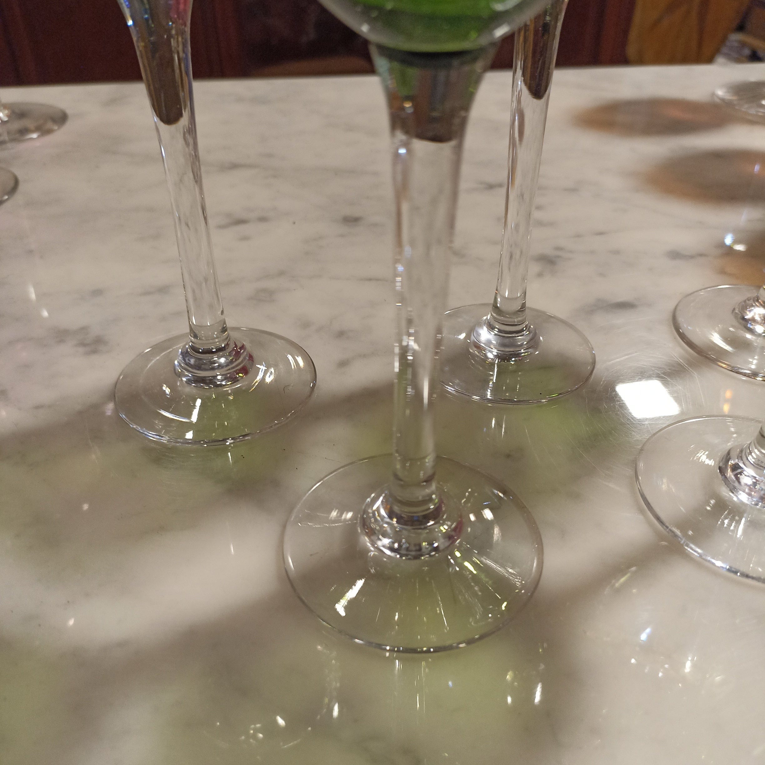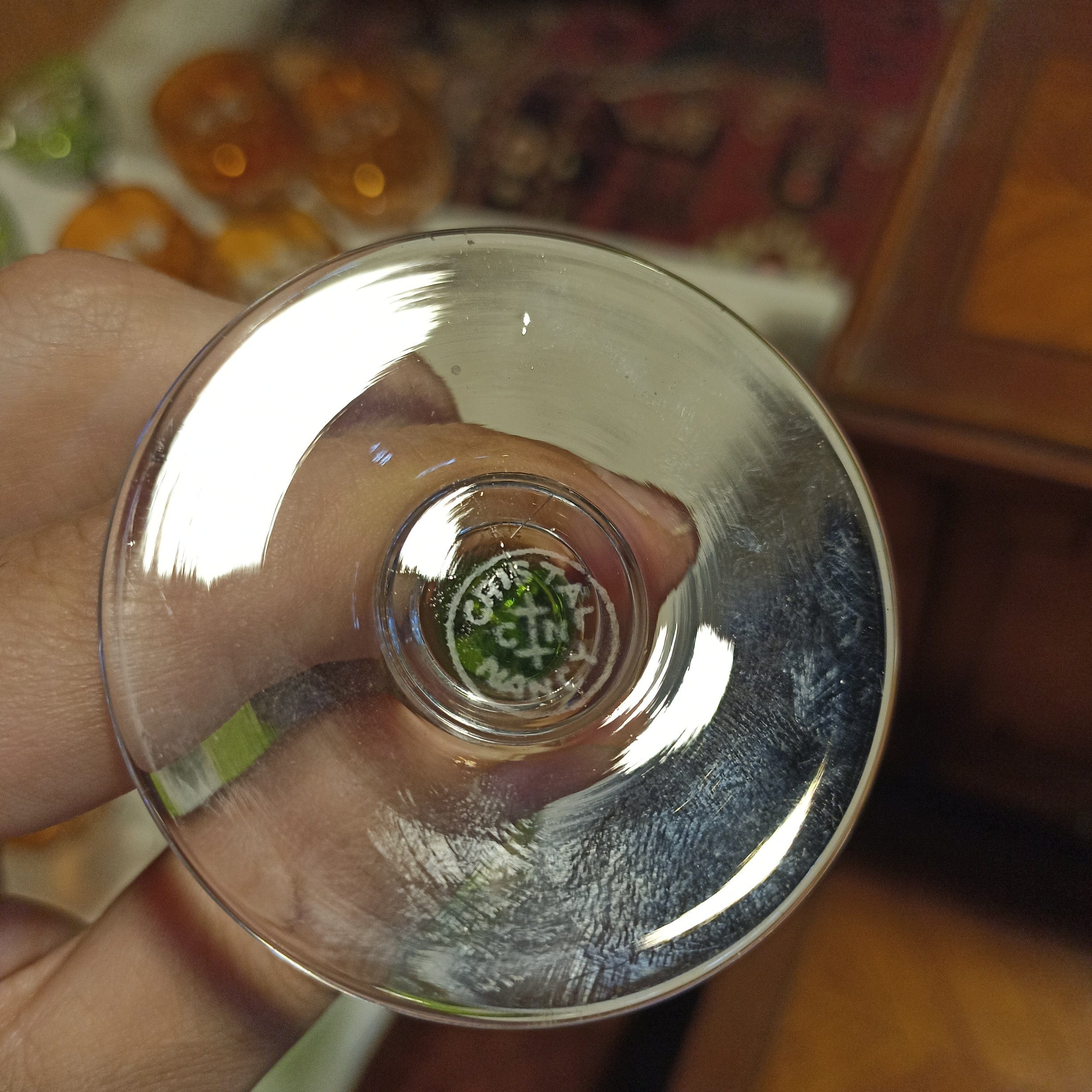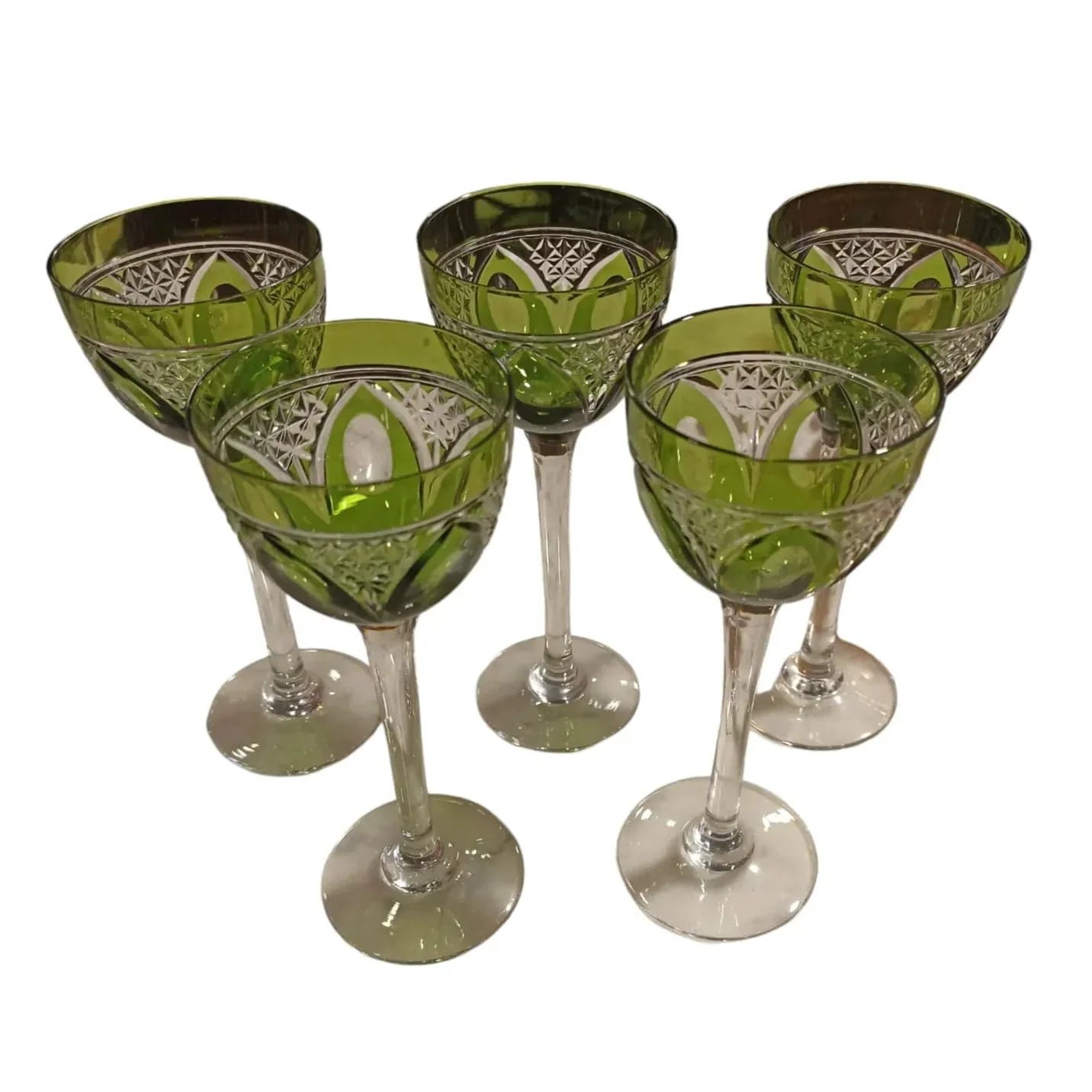 Juego de Cinco Copas de Vino Blanco Cristal Nancy Tallado Francés Color Verde