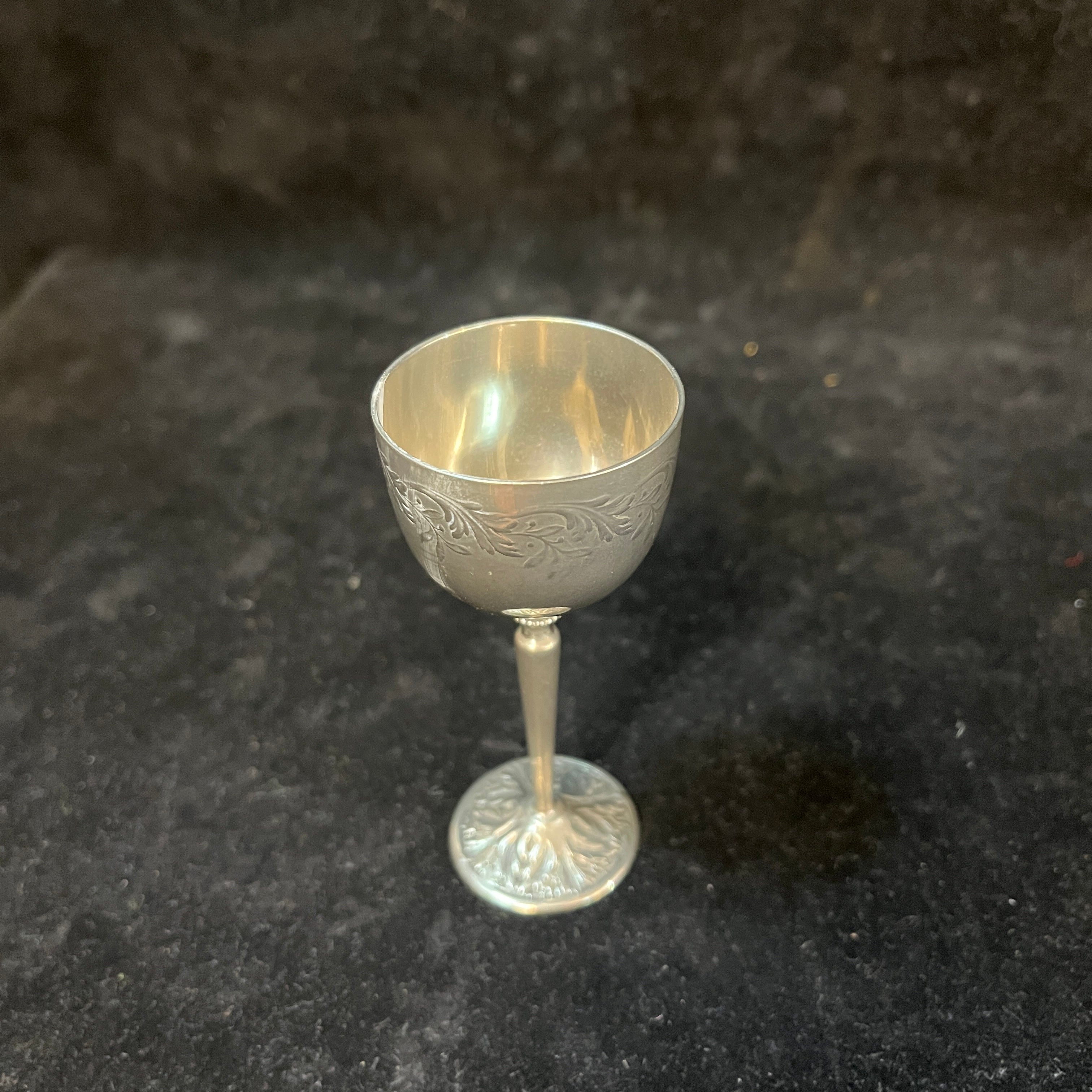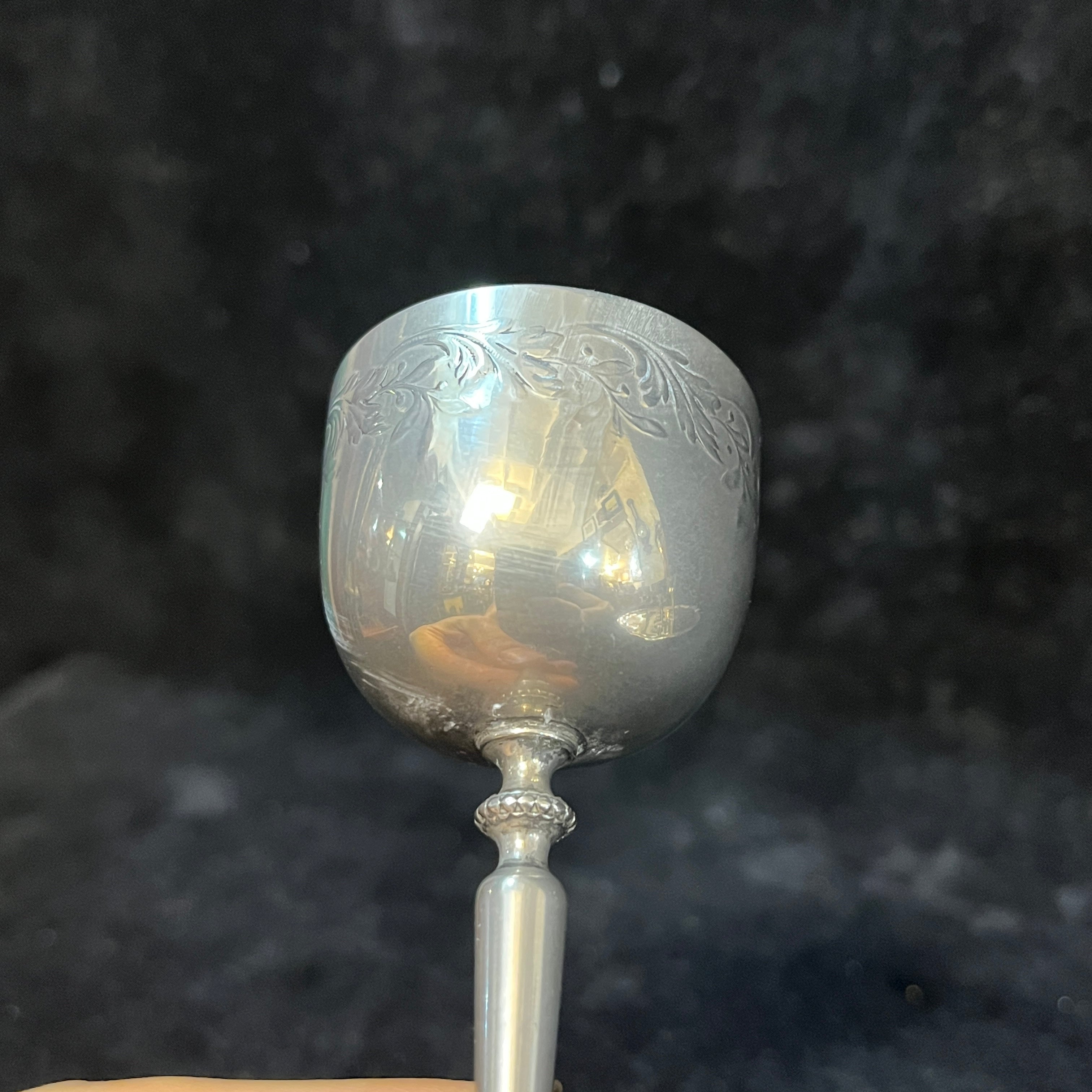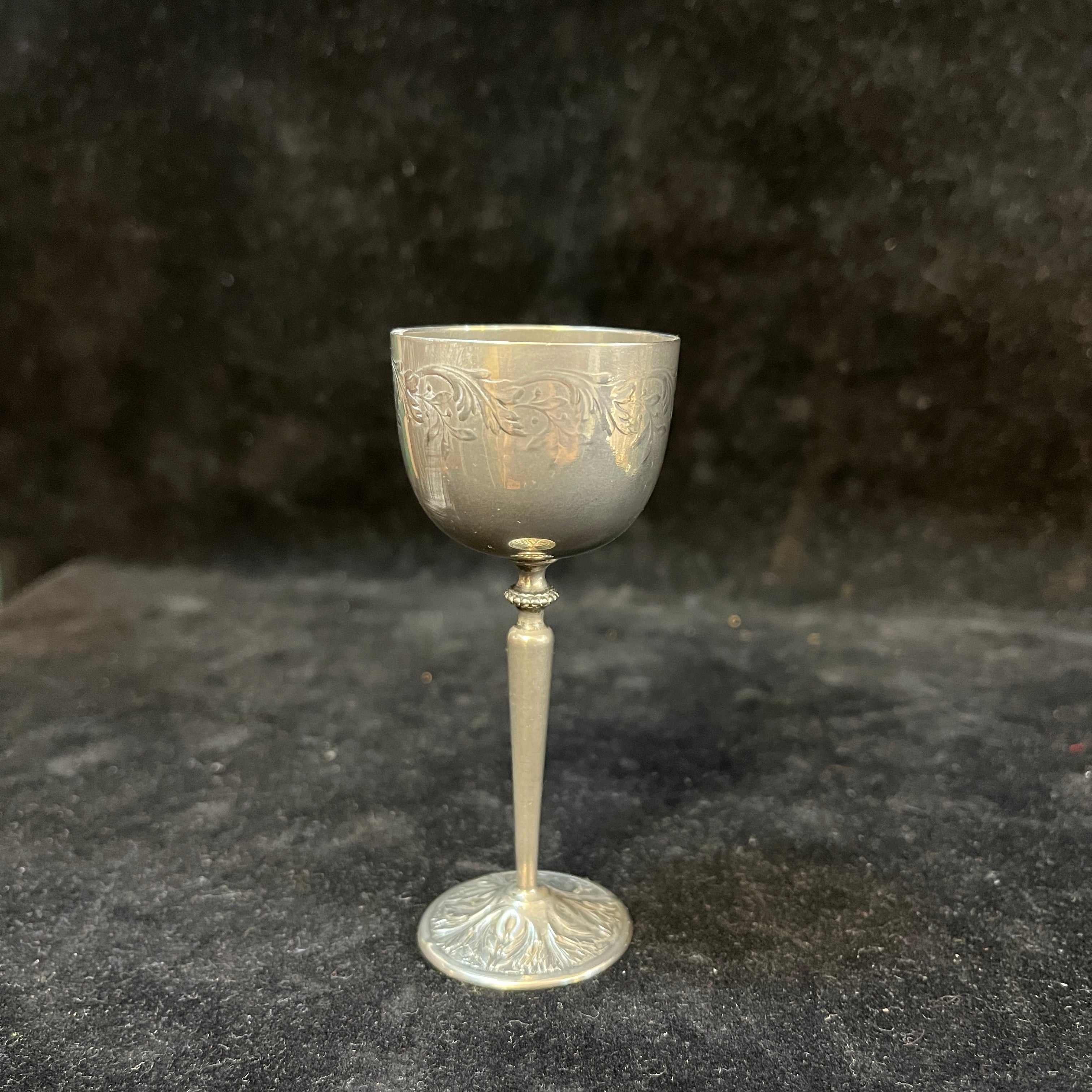 Juego de 7 copitas y bandeja plaqué relieves florales