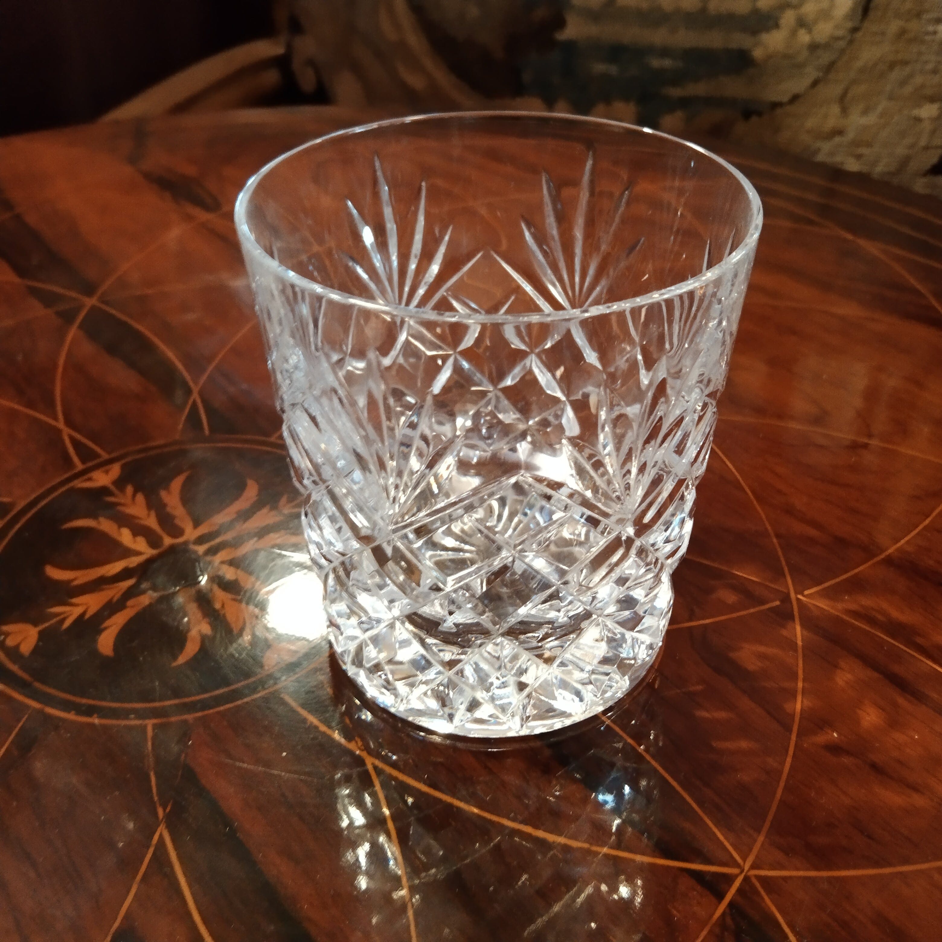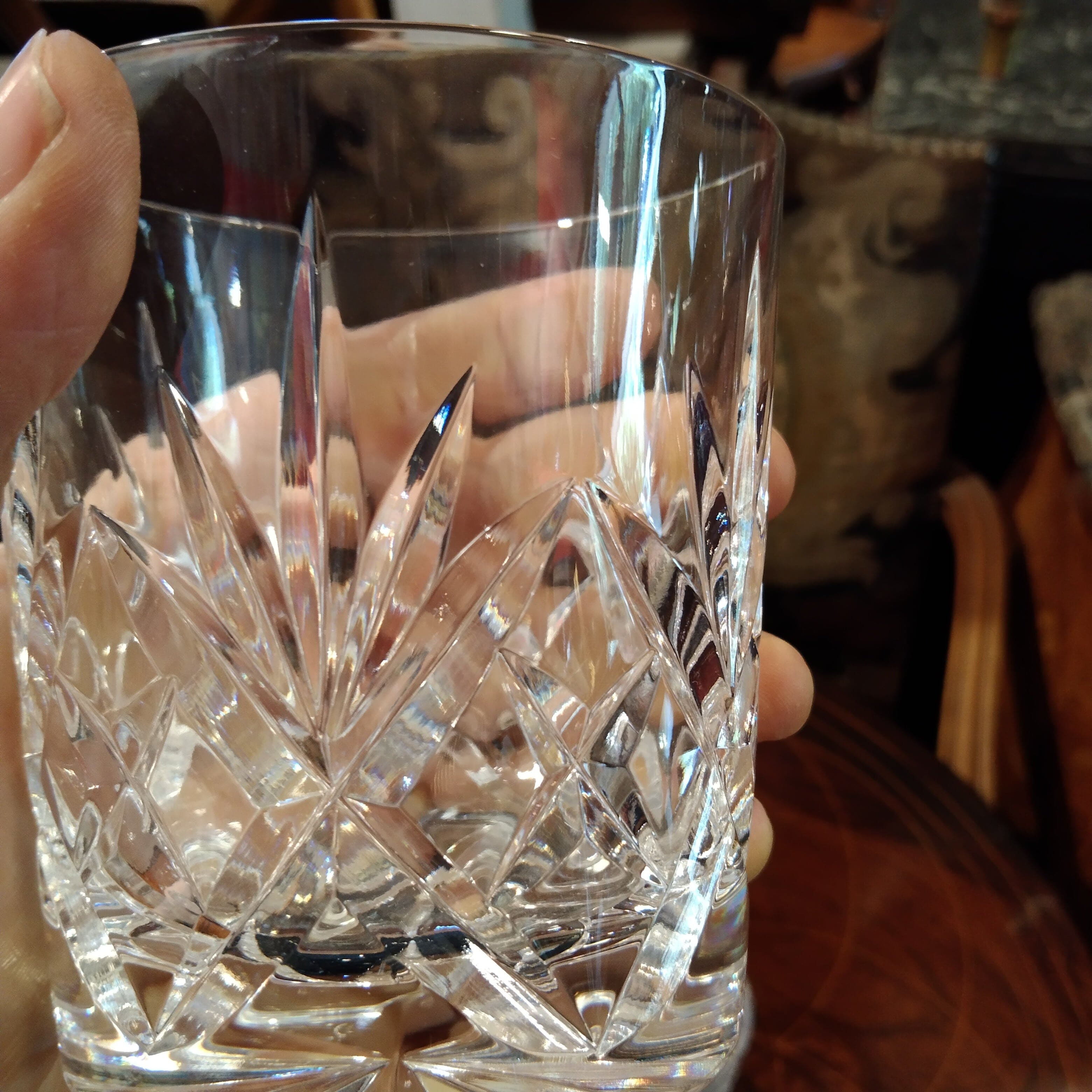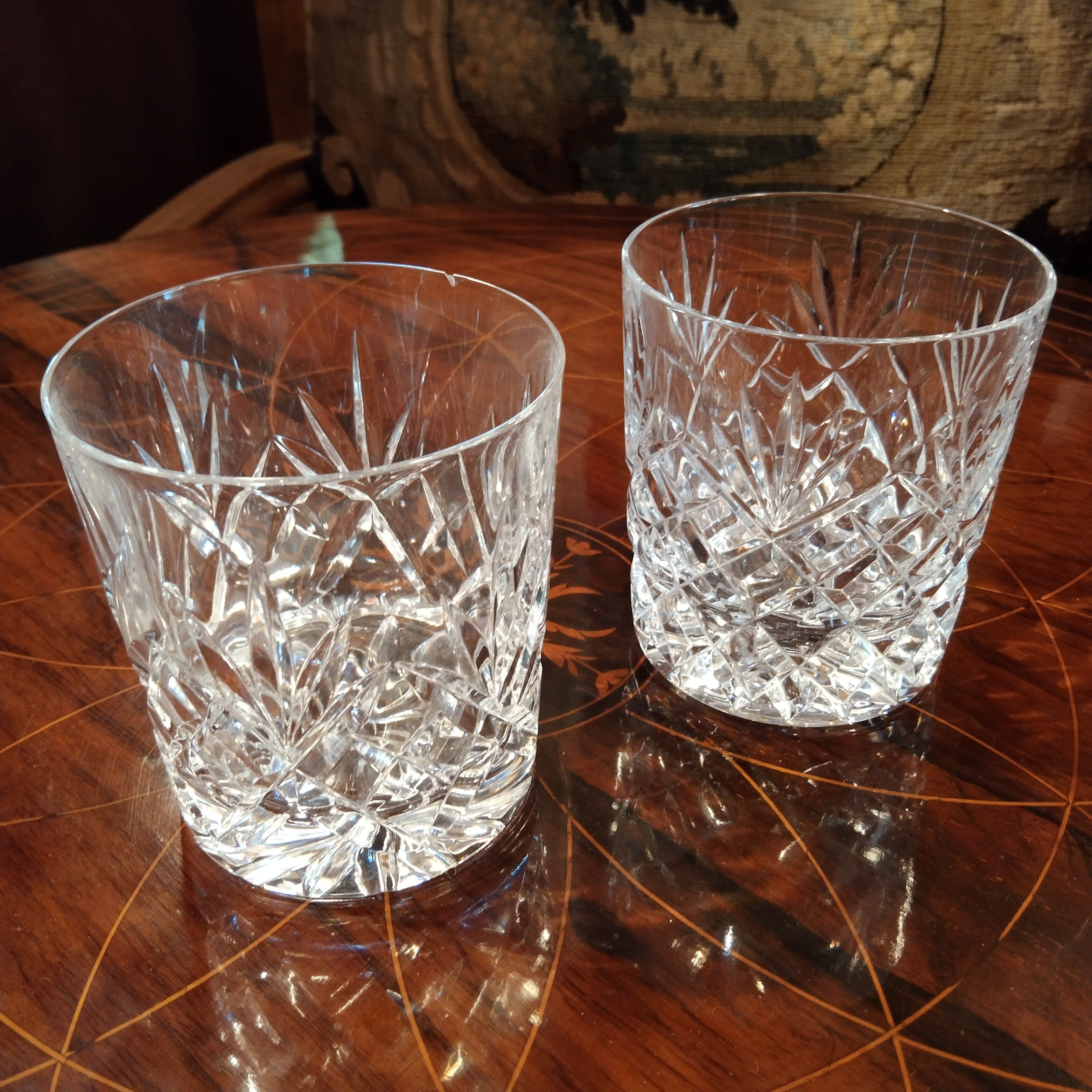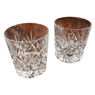 Juego de dos vasos whiskey cristal francés tallado St. Louis