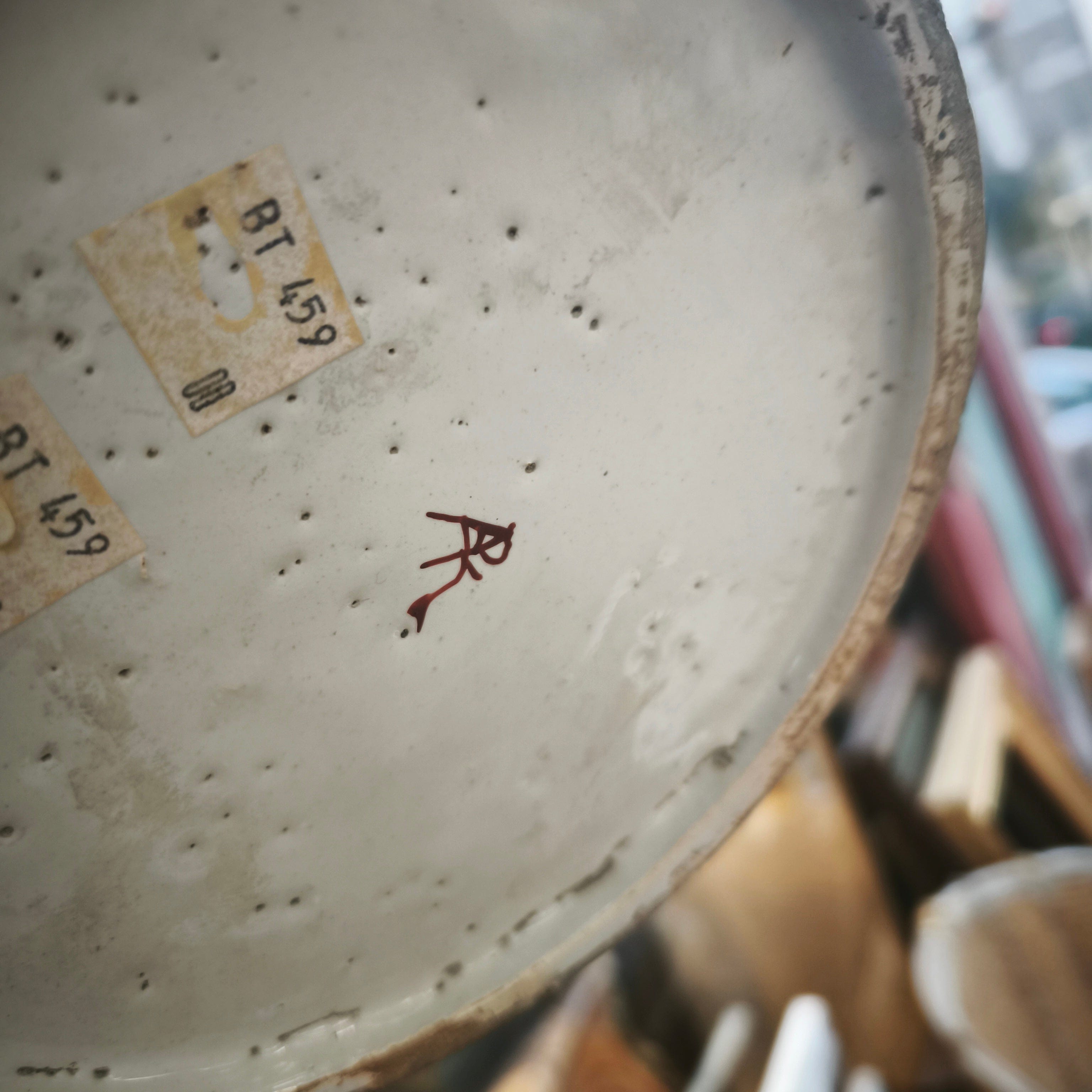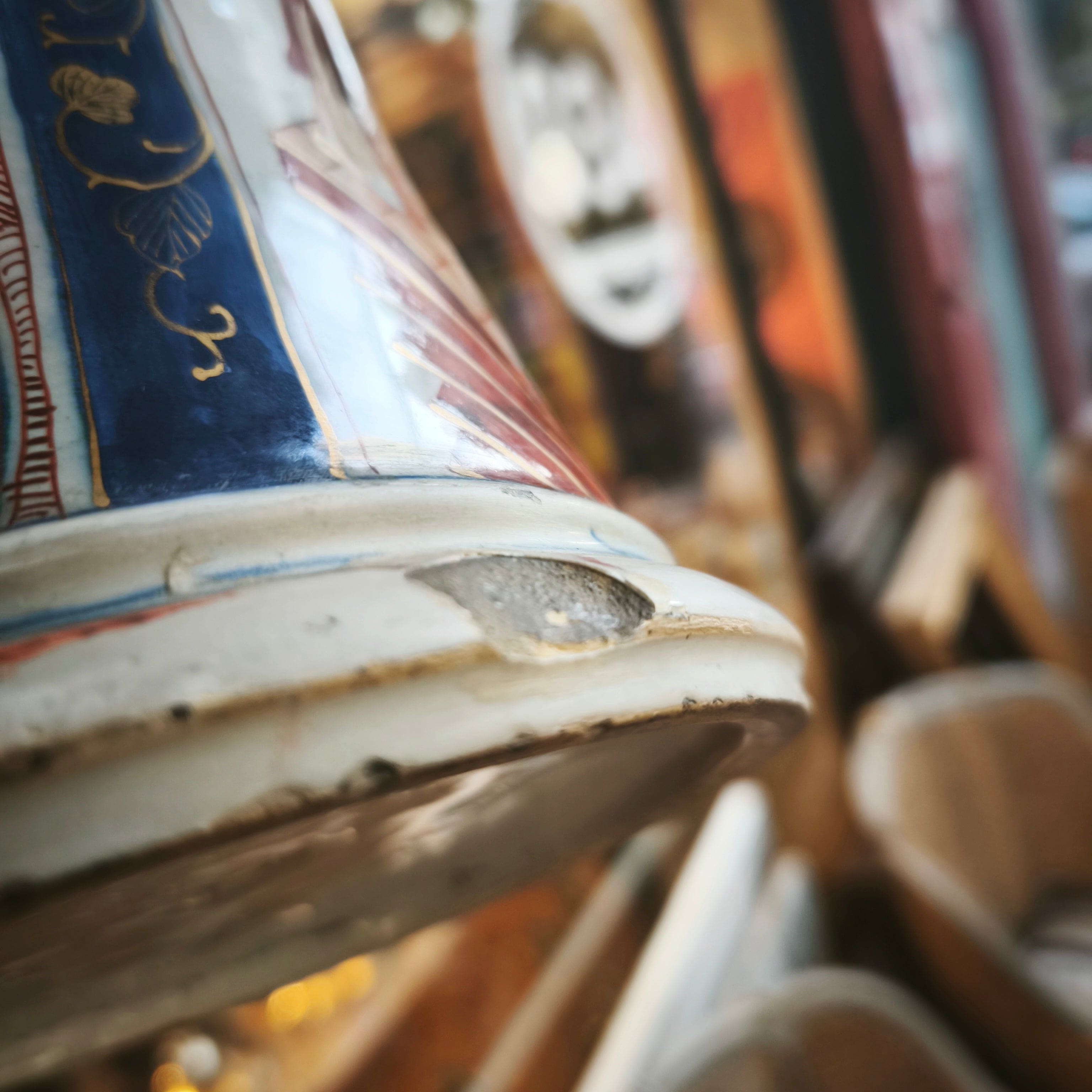 Estado: Tiene varias saltaduras, tomando en cuenta su gran antigüedad (inferido a través de su sello pintado a mano)