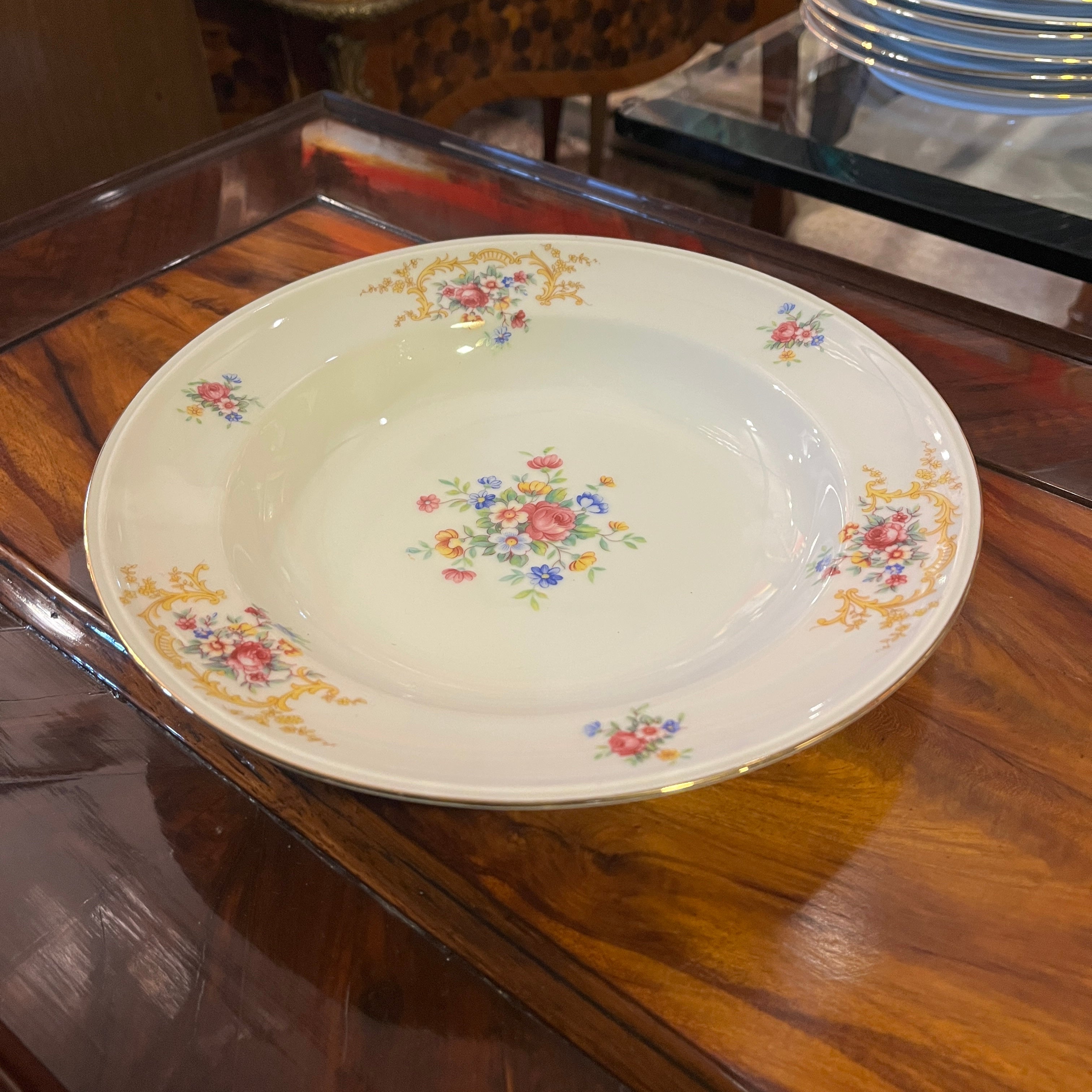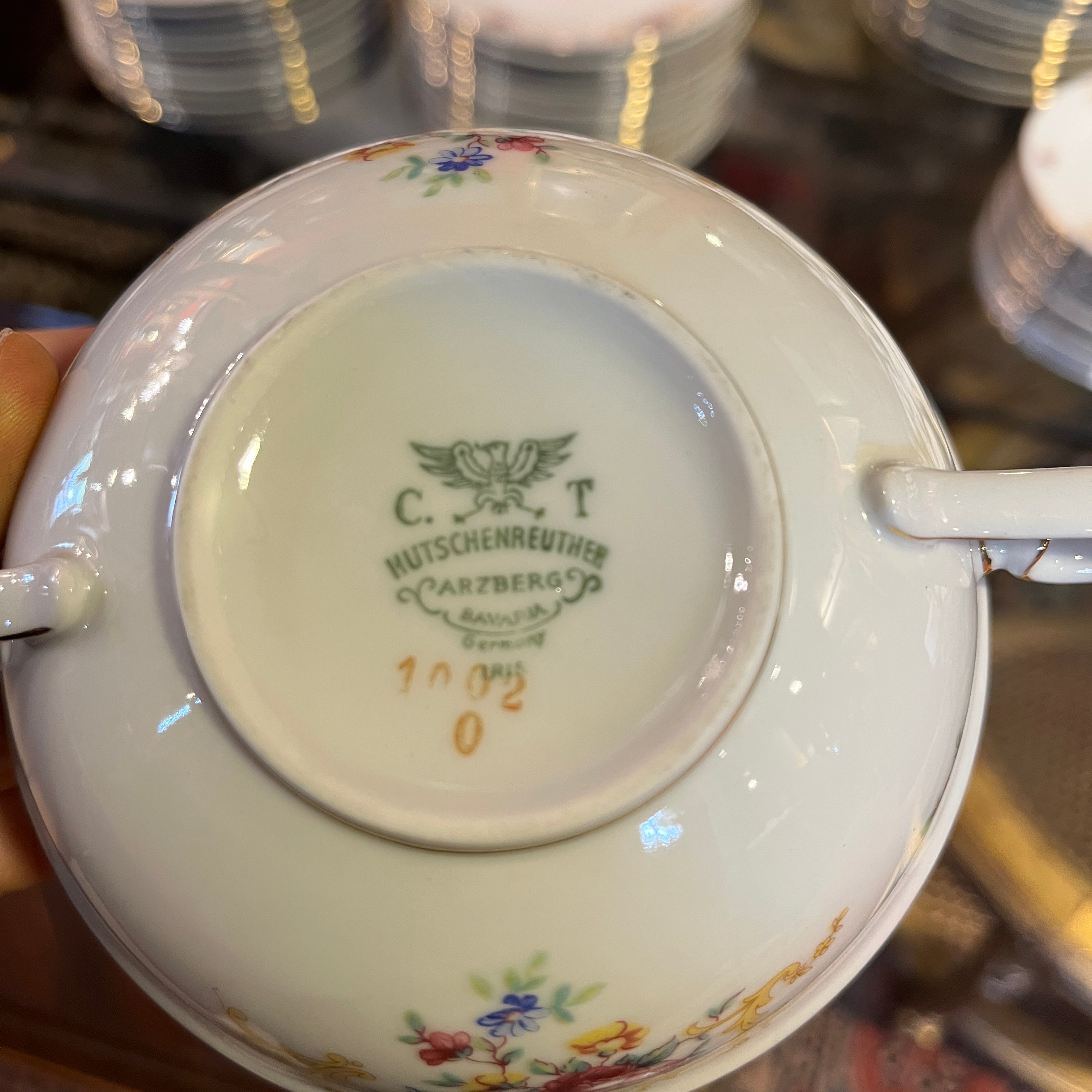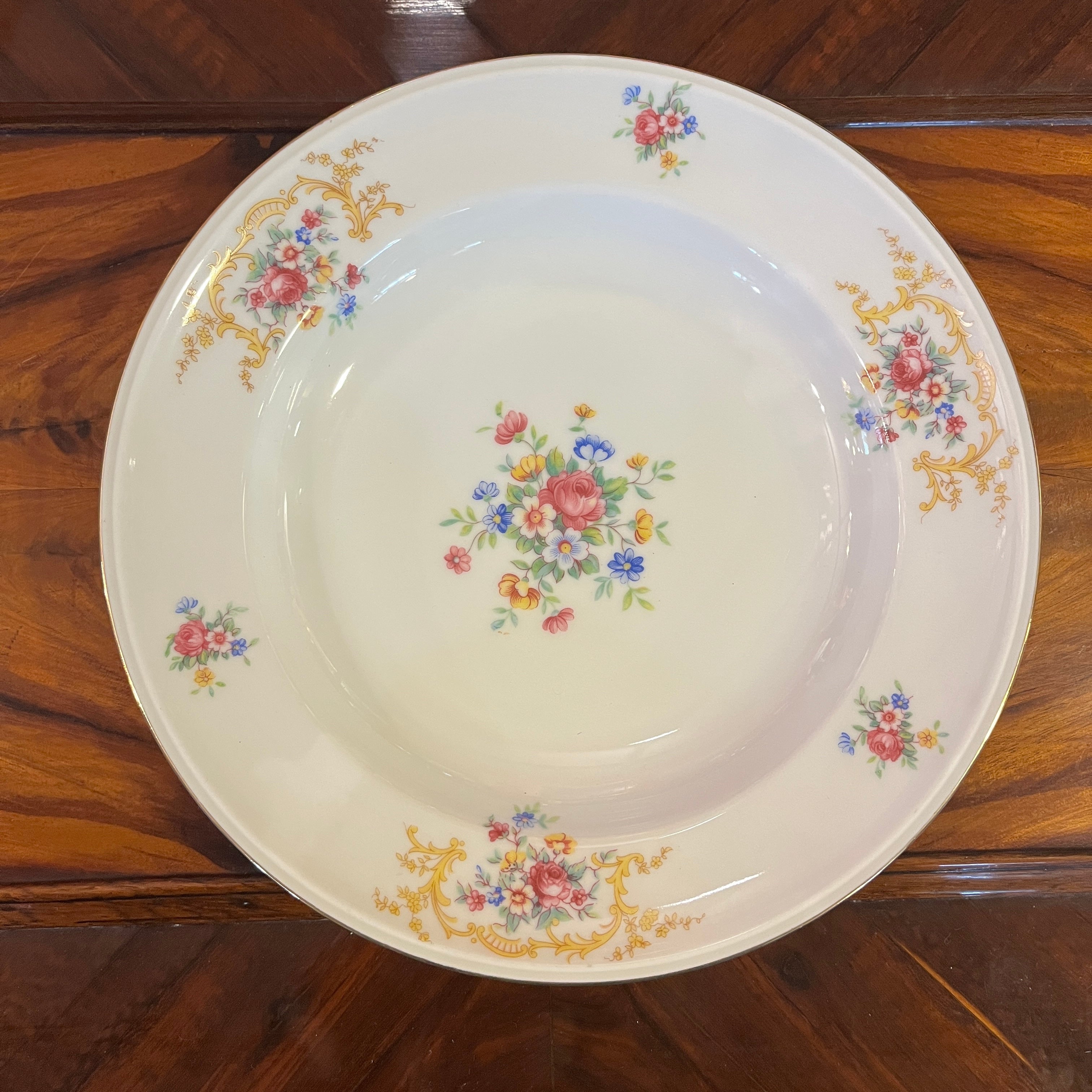 Juego de porcelana alemana Hutschenreuter 207 piezas Diseño flores y guirnalda dorada