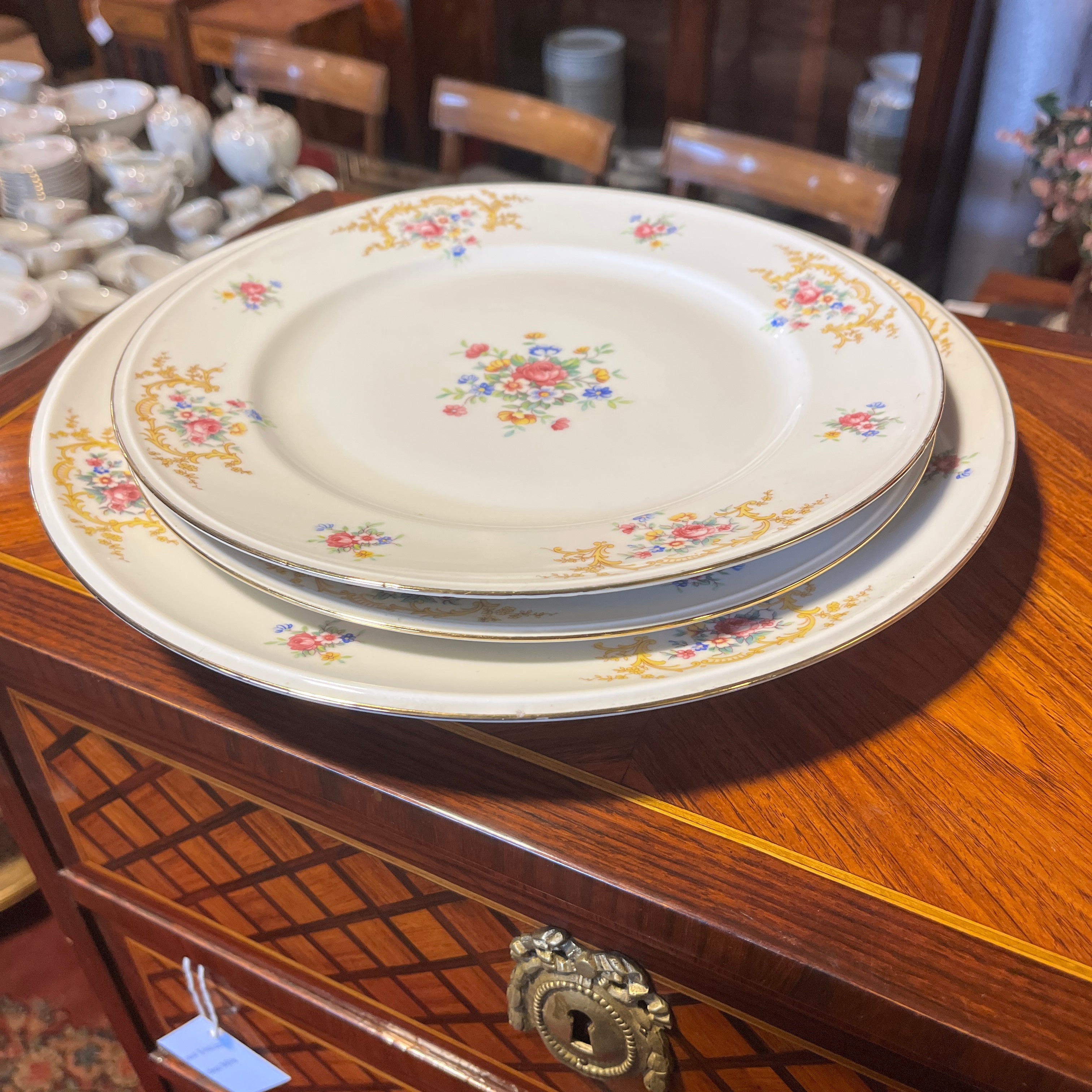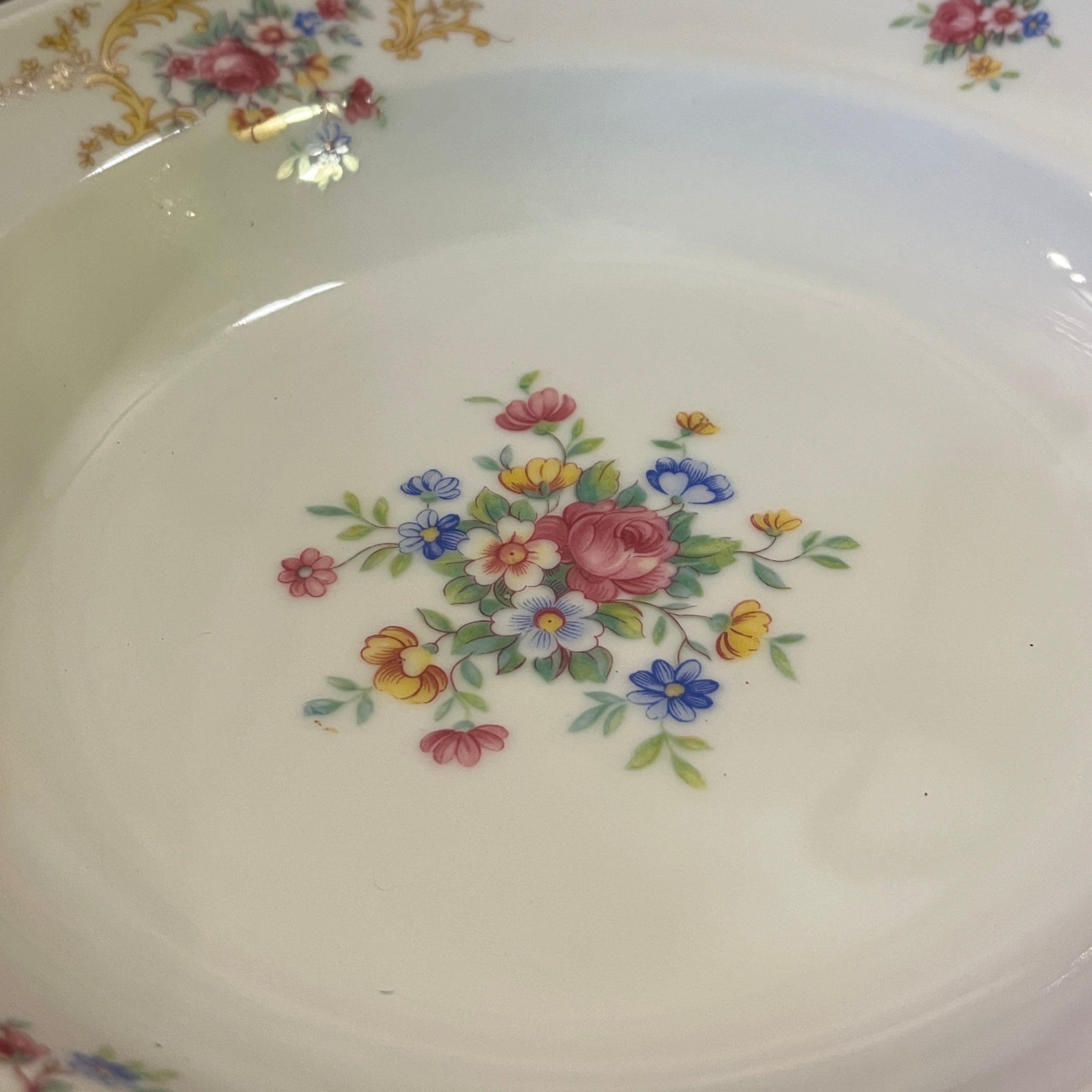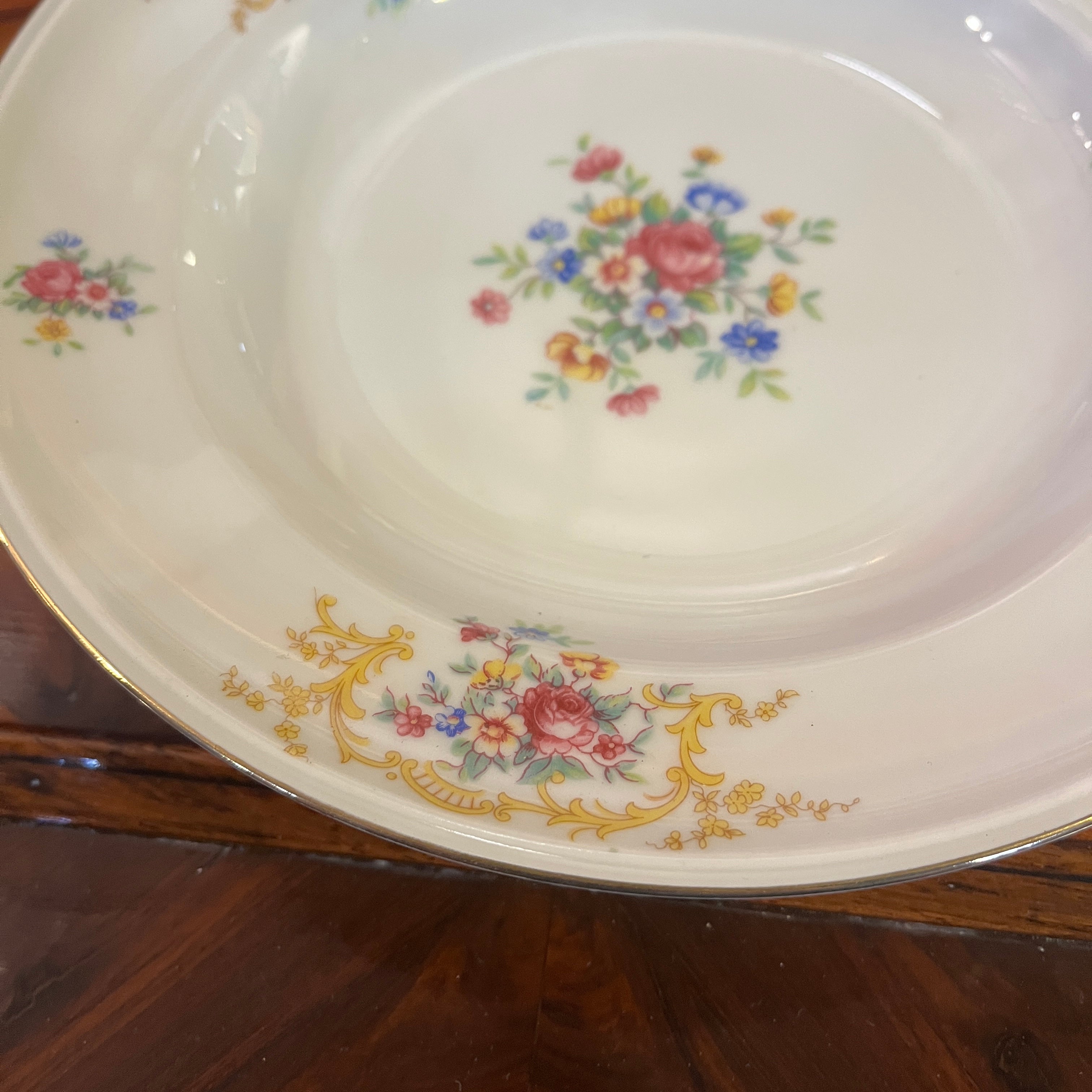 Juego de porcelana alemana Hutschenreuter 207 piezas Diseño flores y guirnalda dorada