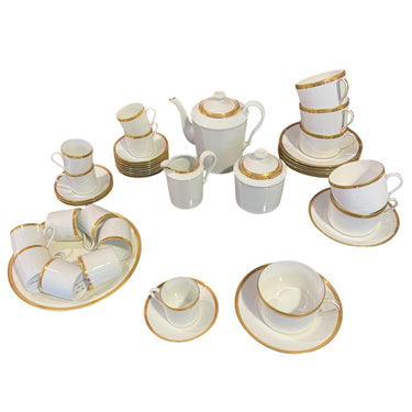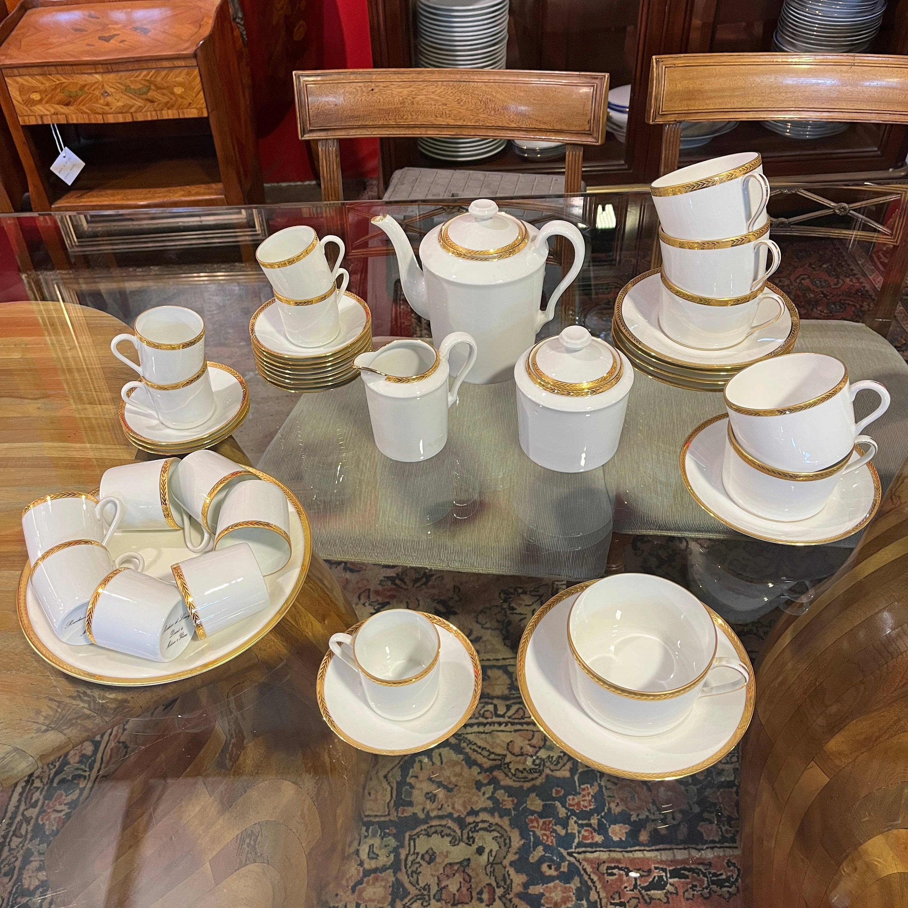 Juego de té y café 6 personas porcelana francesa Limoges borde guirnalda dorada