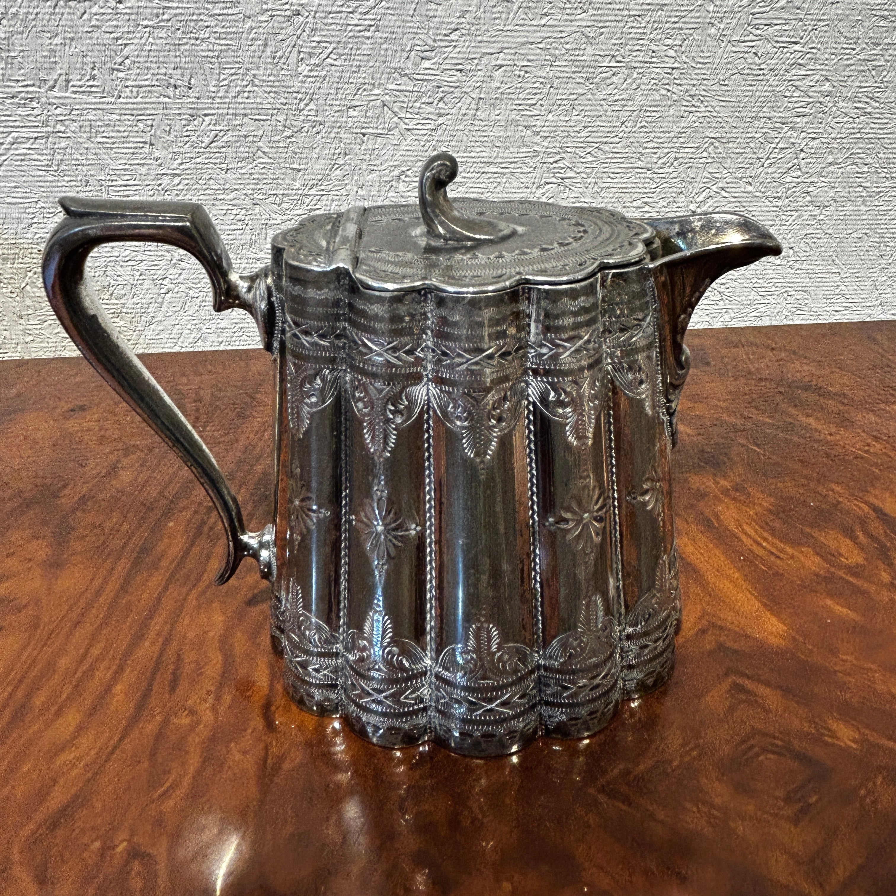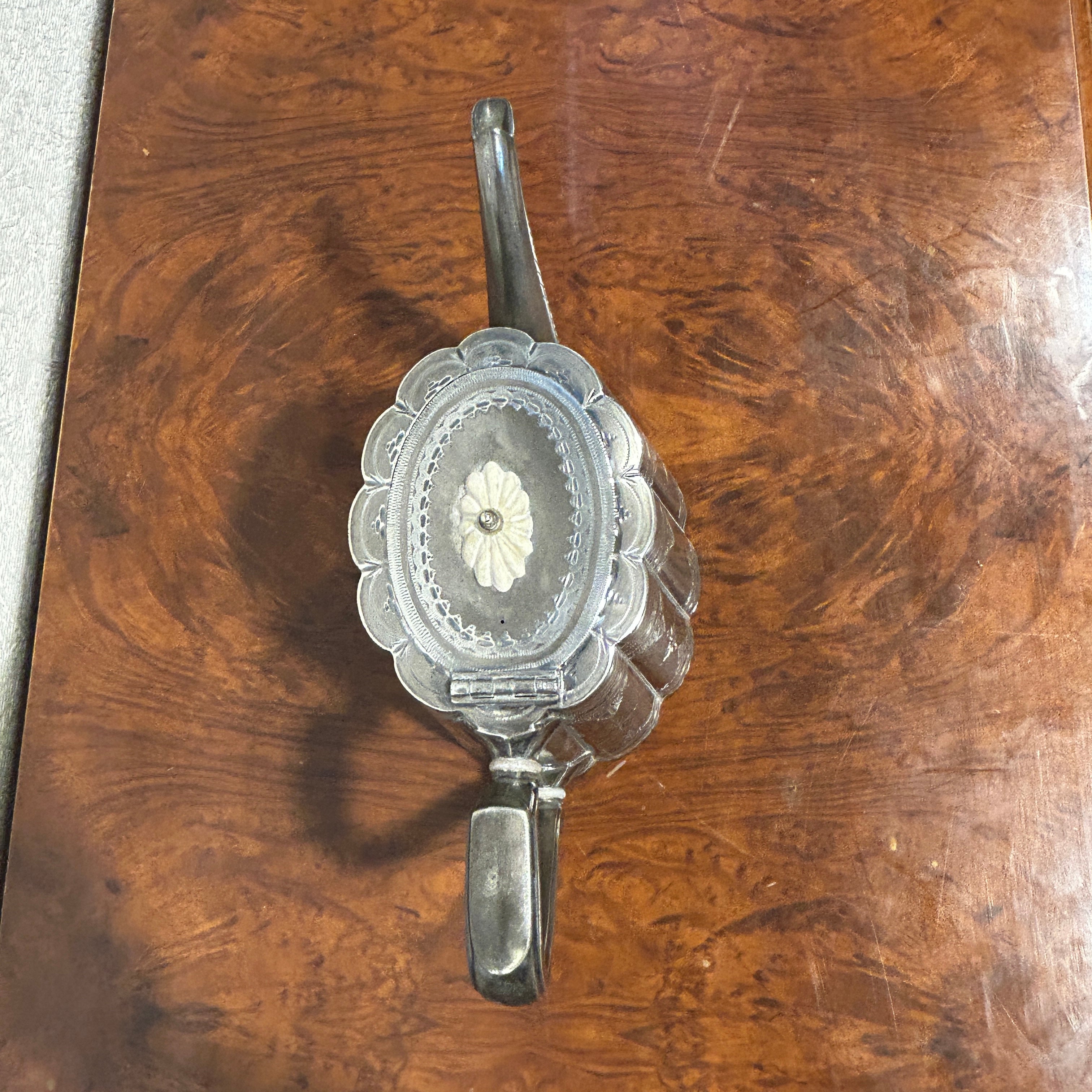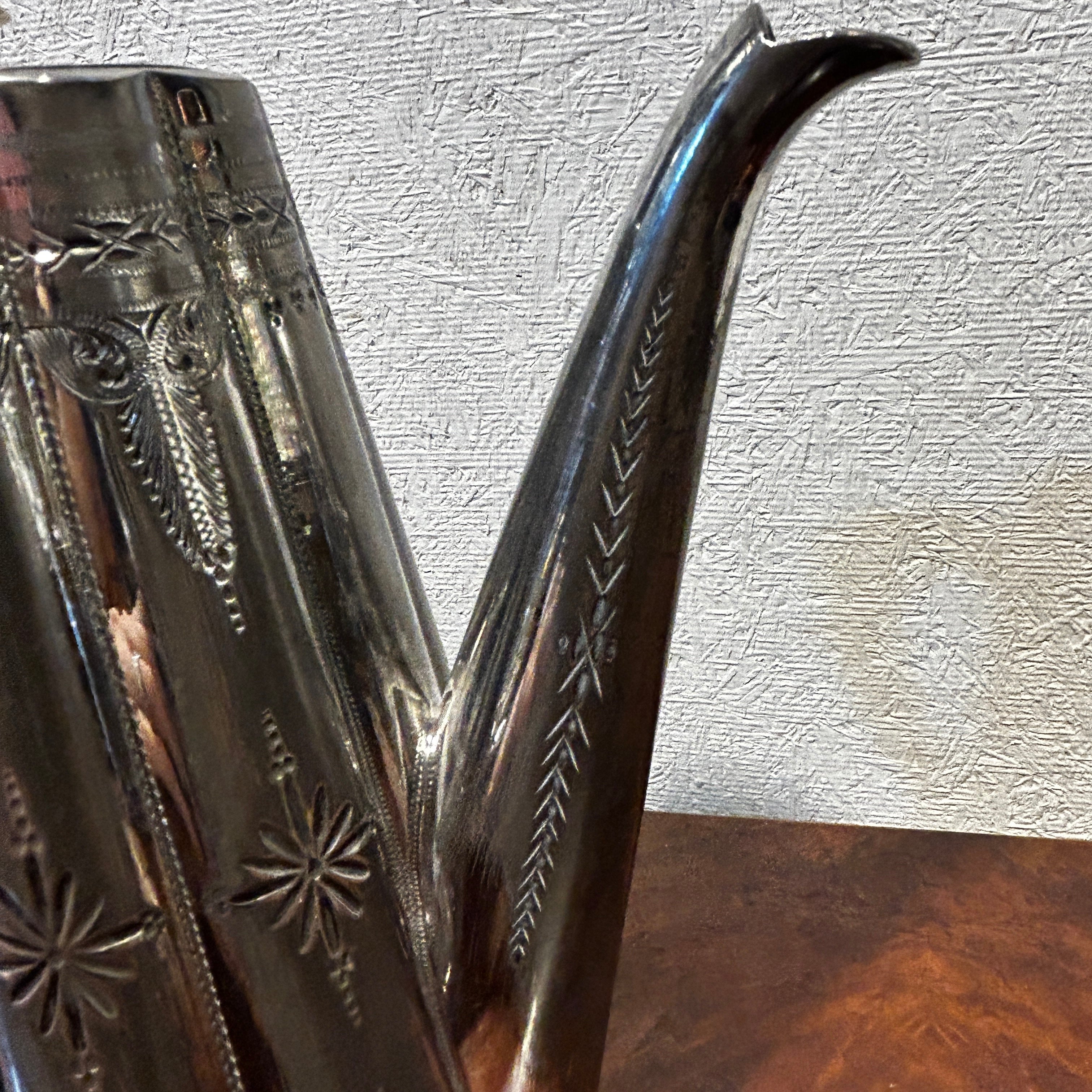 Exclusivo juego para servir el té de plaqué inglés de la prestigiosa marca Sheffield estilo pre Art Nouveau. Cada pieza tiene delicado tallado repujado con decoraciones de plumaje y hojas. Además podemos destacar que cada tapa posee un bellísimo aislante de marfil tallado con forma de flor. El juego está compuesto por dos teteras de diferente tamaño, un azucarero, un lechero y la bandeja.