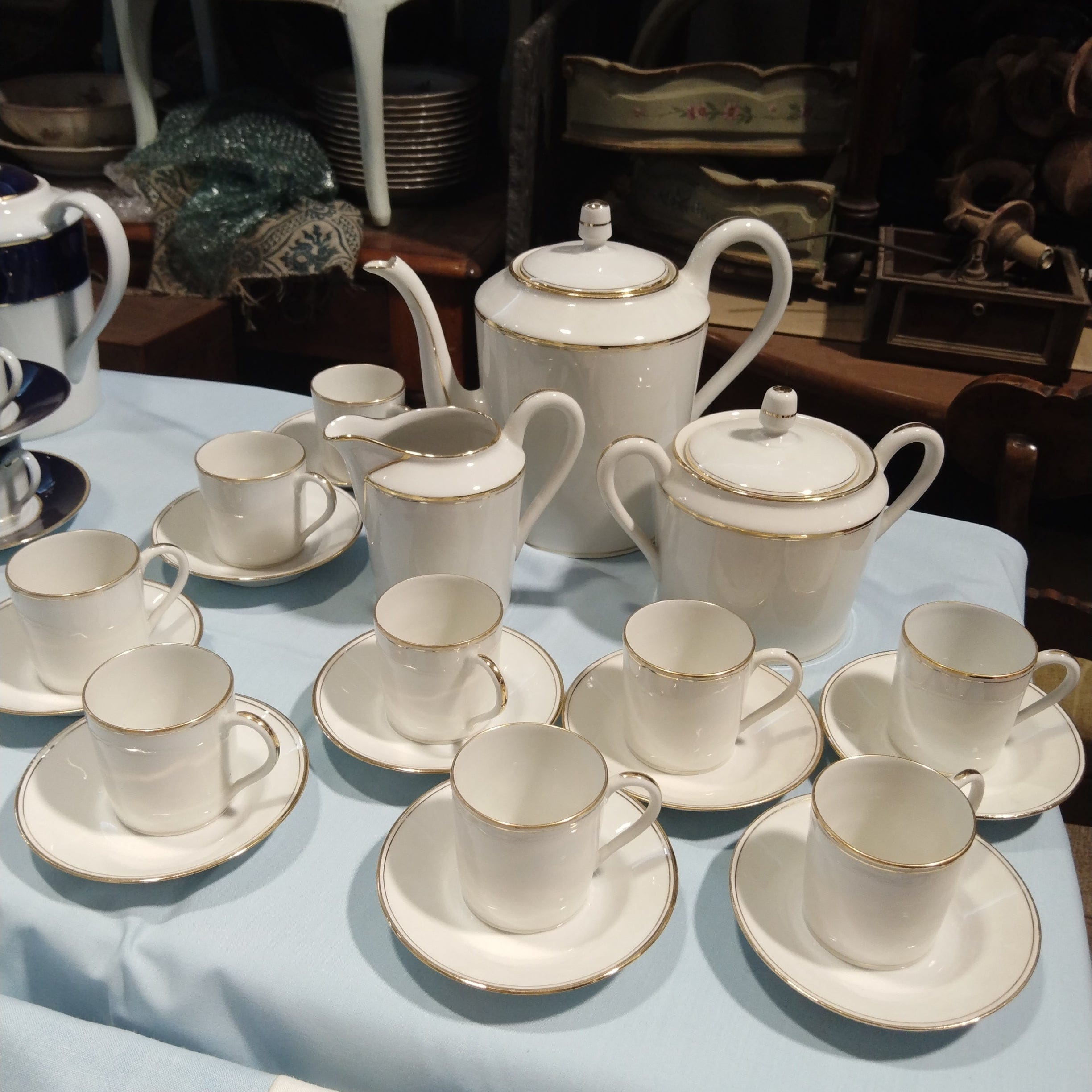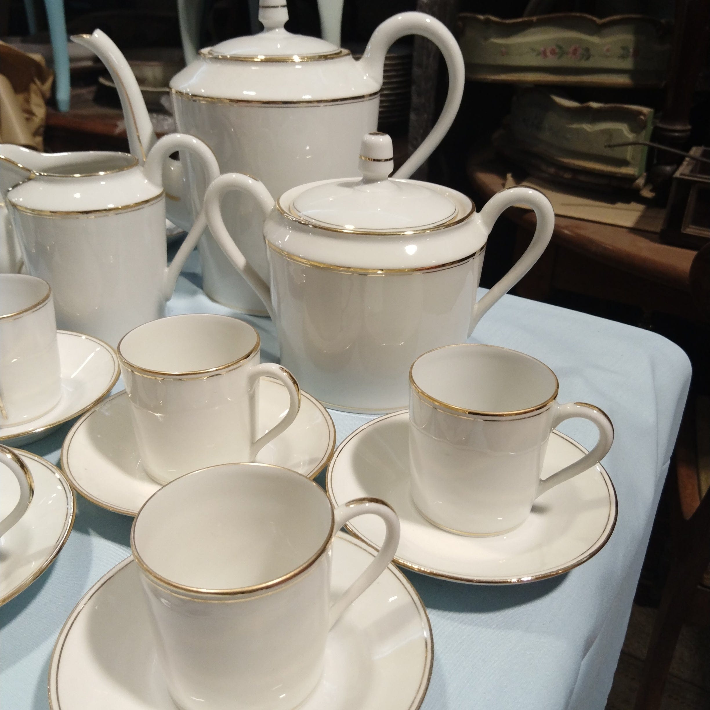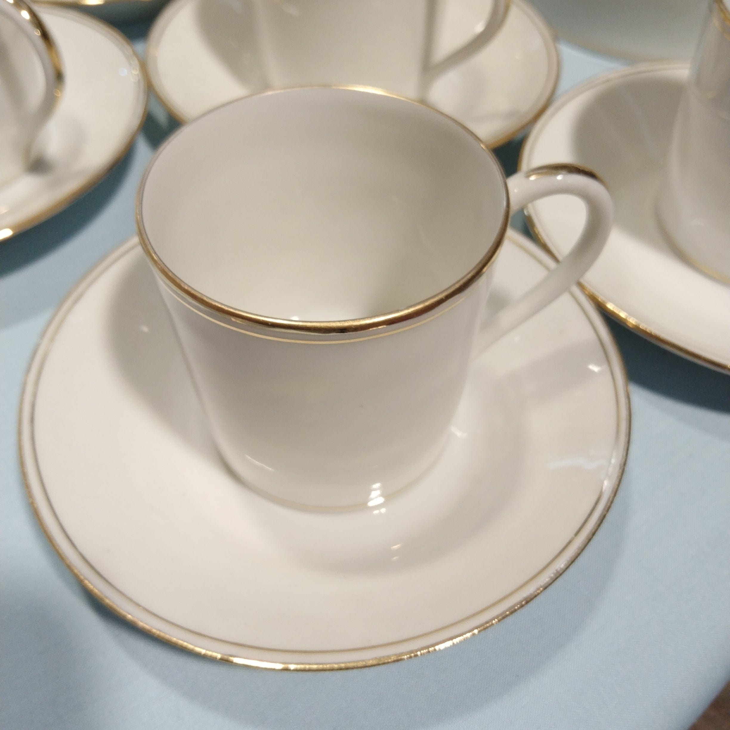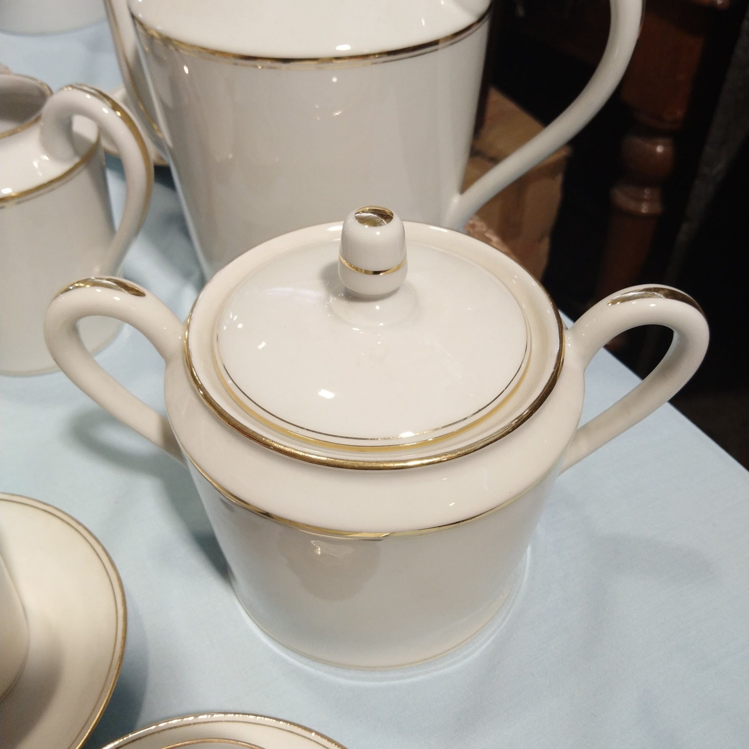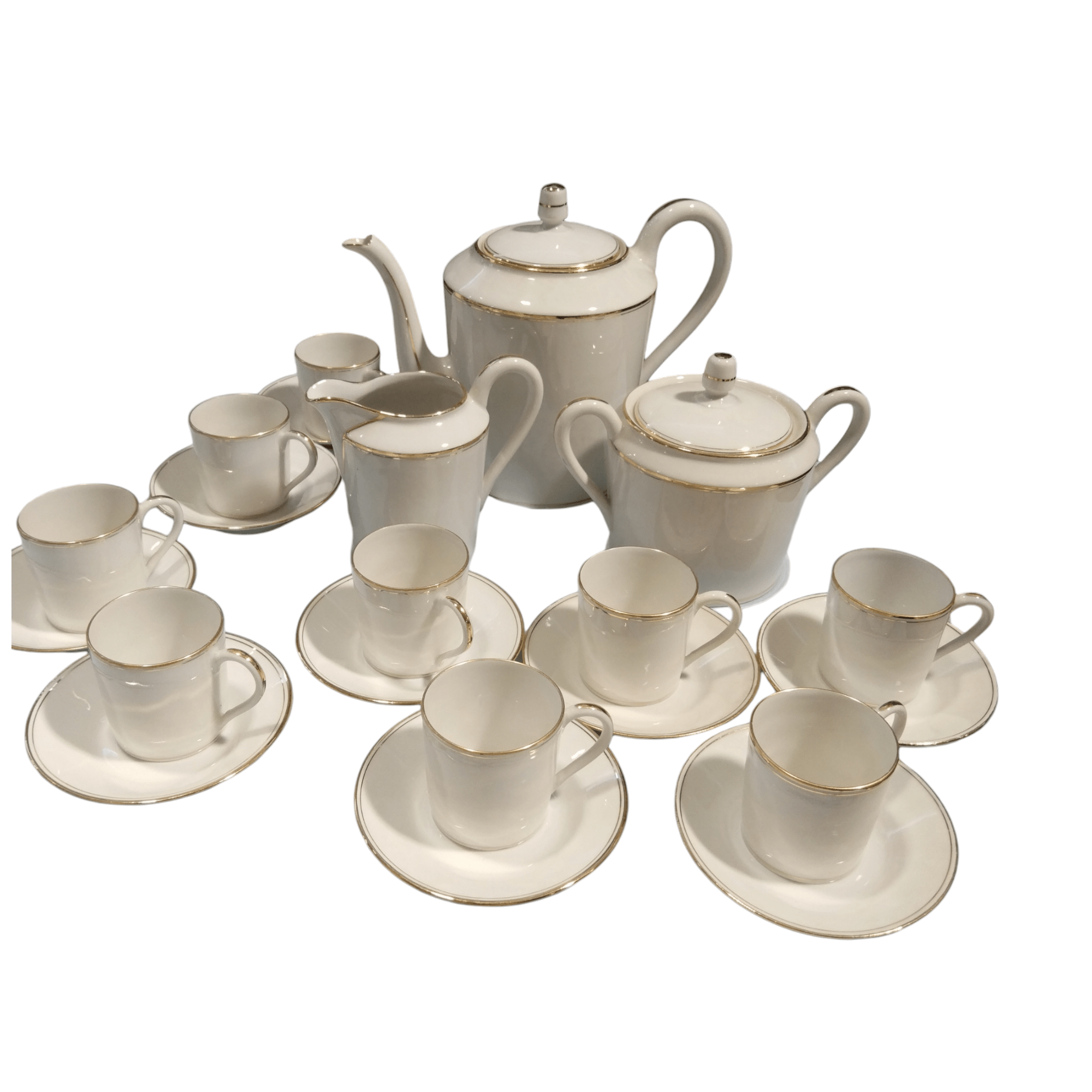 Juego de té porcelana francesa Limoges Nueve personas detalle línea dorada