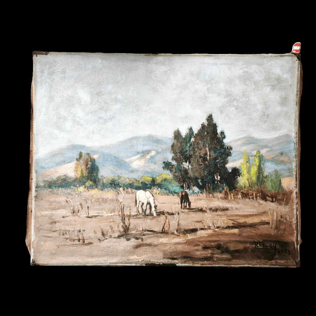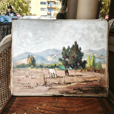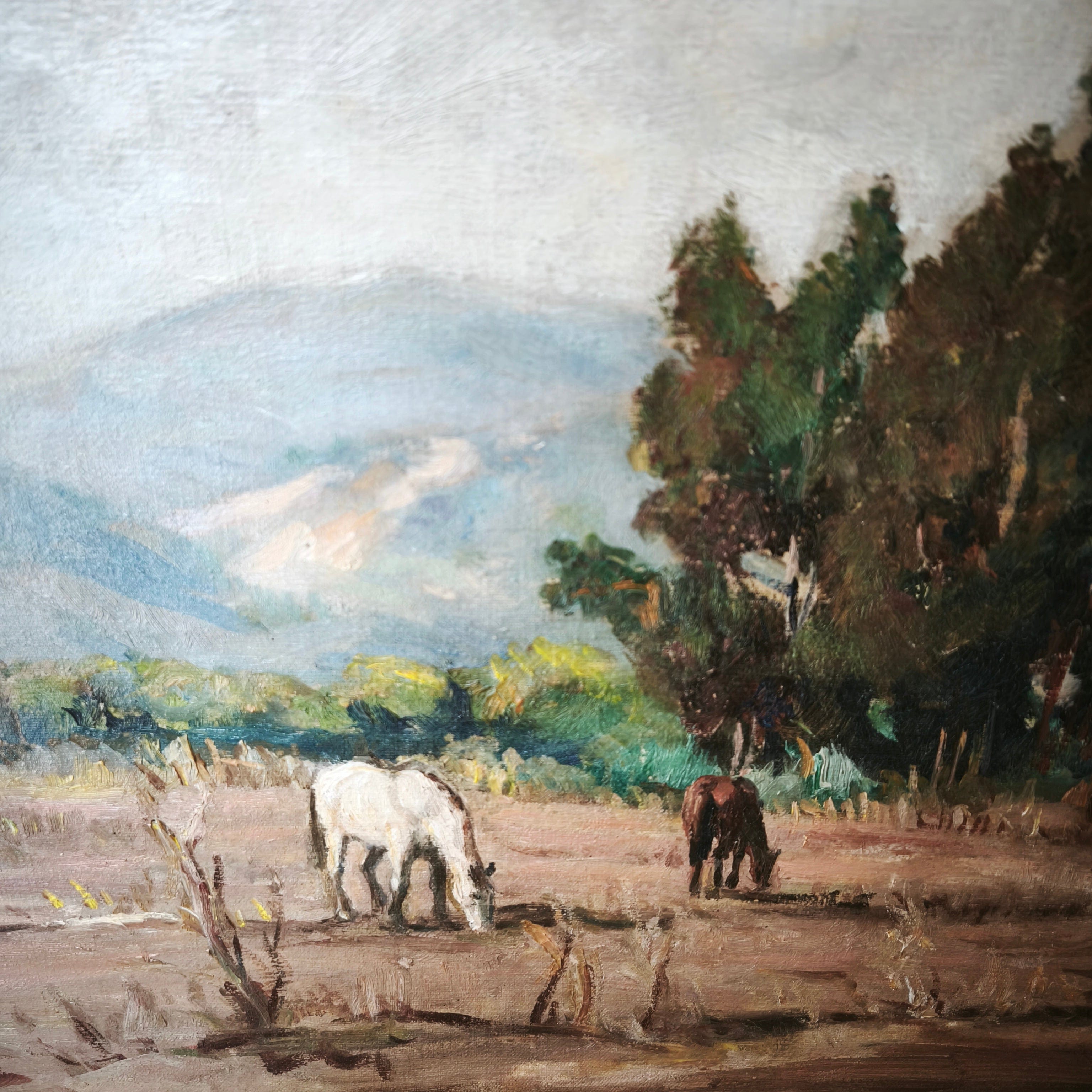 Laslo Vuchetich de Czeney - Óleo 'Paisaje rural caballos pastando'