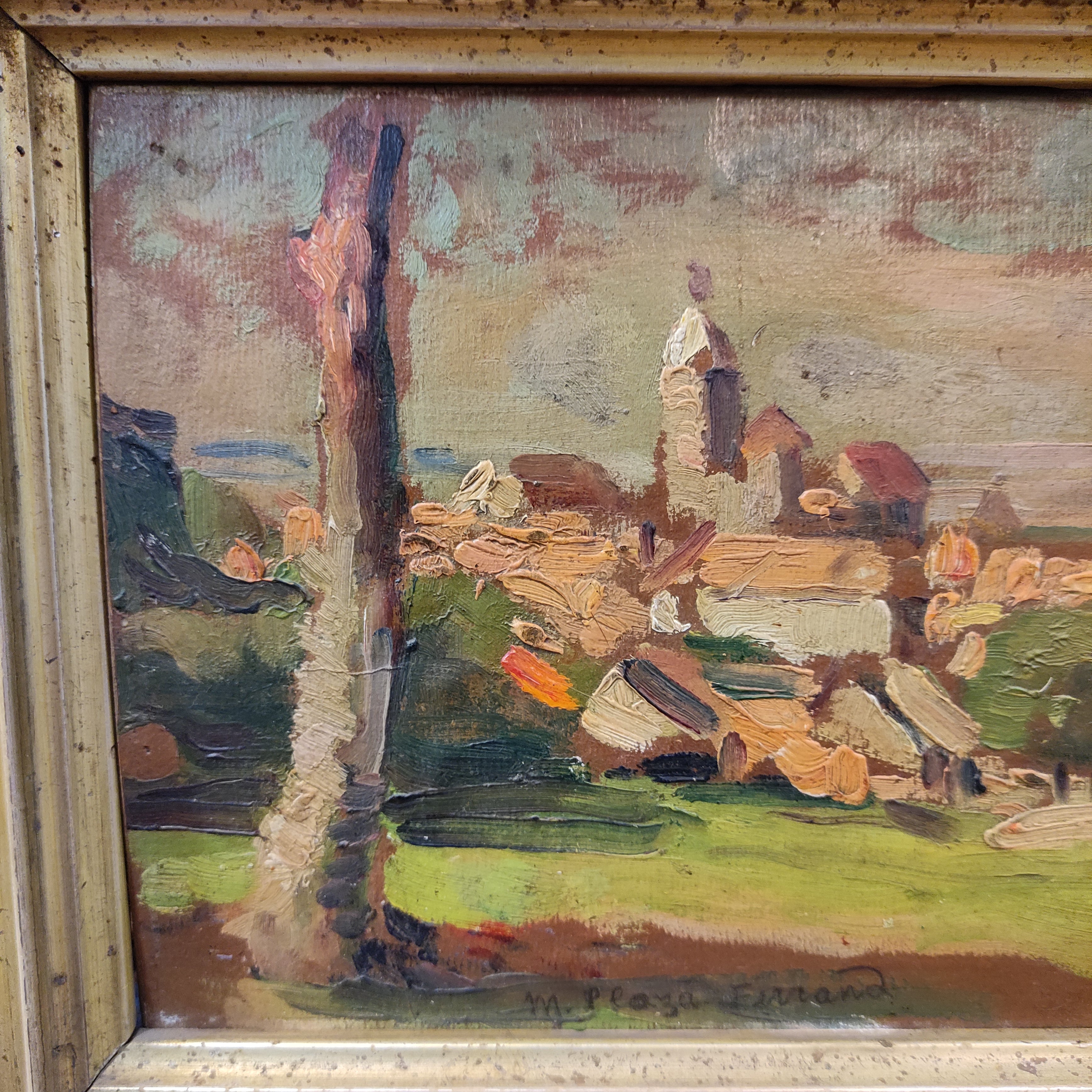 Marcial Plaza Ferrand - Óleo sobre cartón 'Paisaje de pueblo'