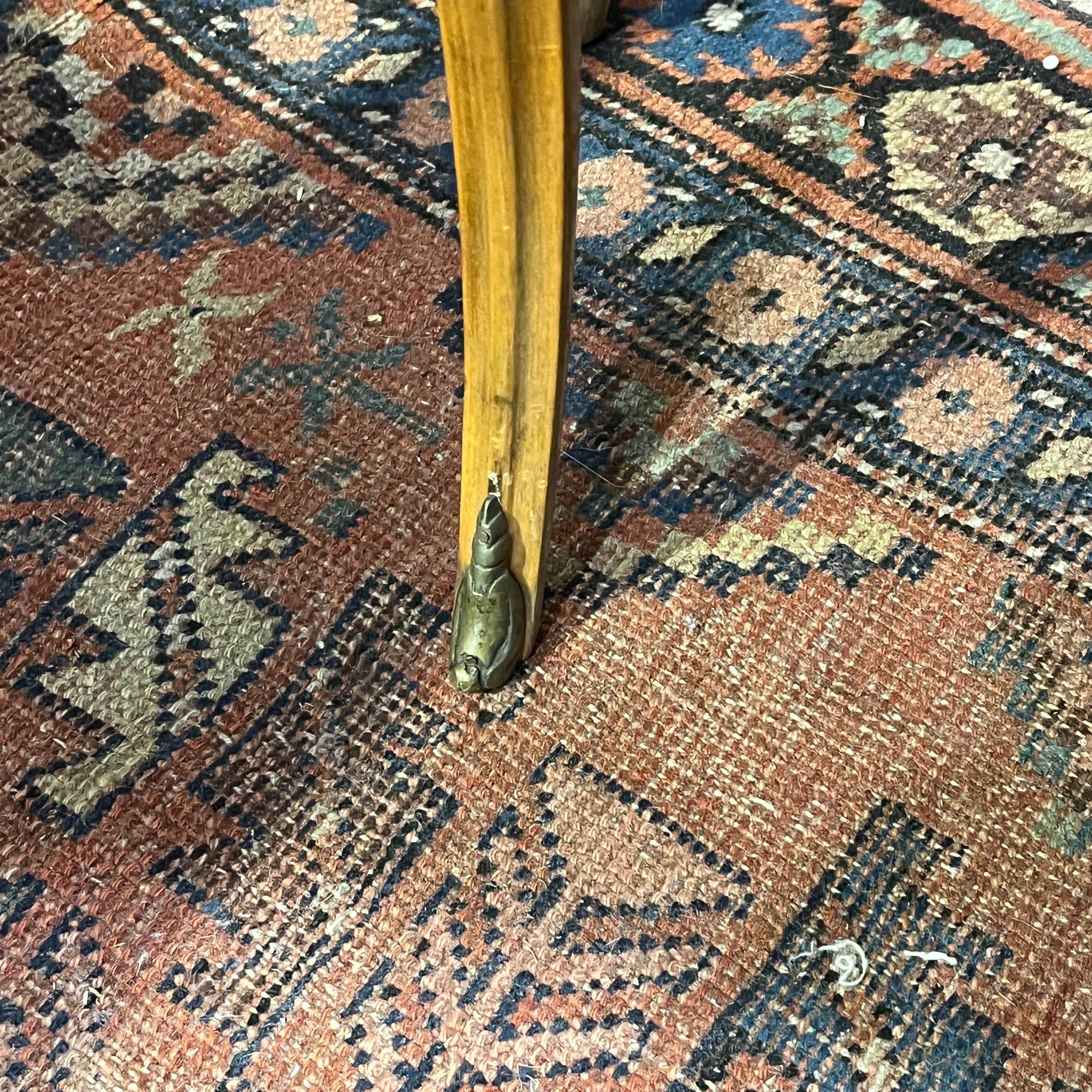 Bella mesa de apoyo de origen francés estilo Luis XVI en forma de riñón, hecha de madera frutal, con patas curvas, aplicaciones y cintillo de bronce. La mesa tiene un cajón.