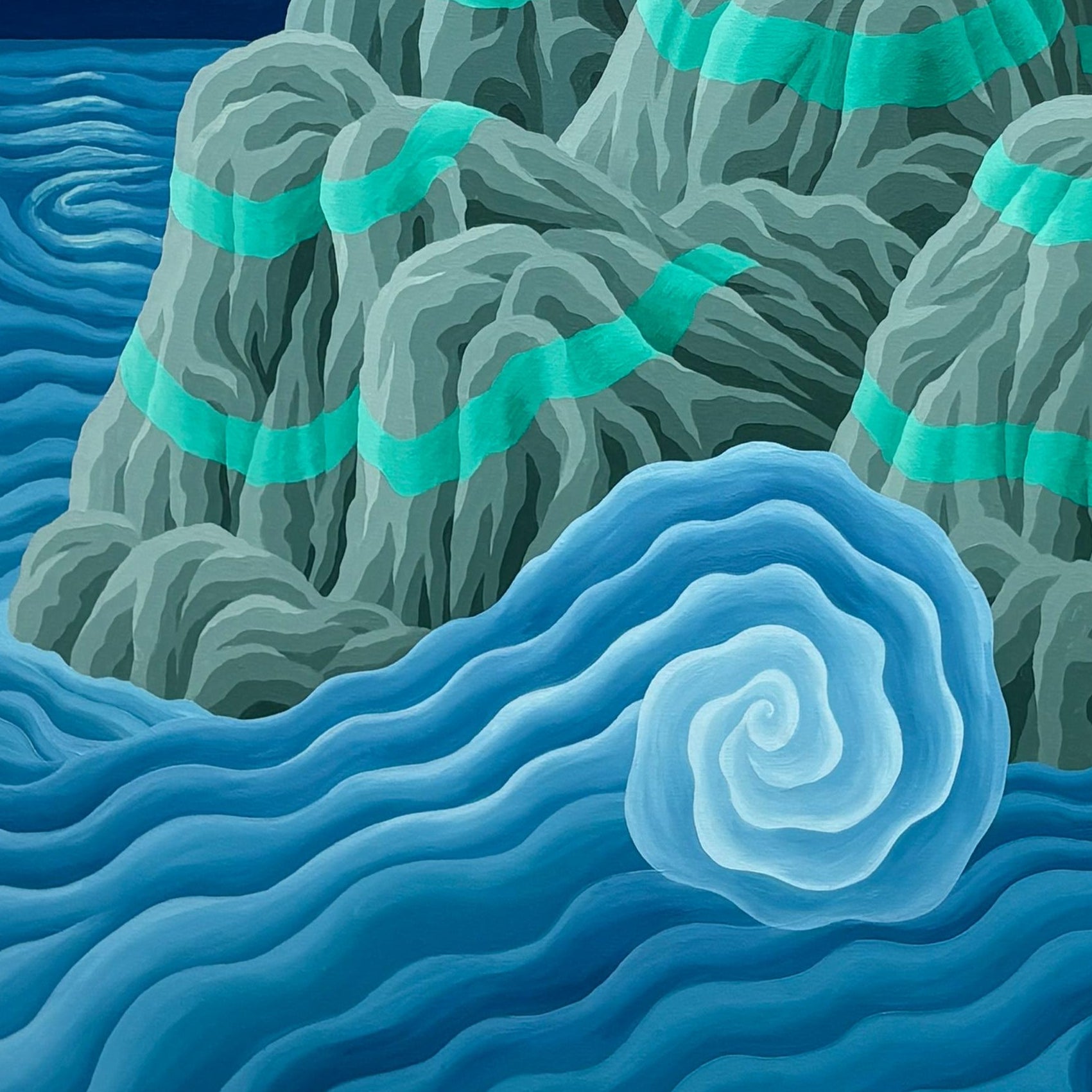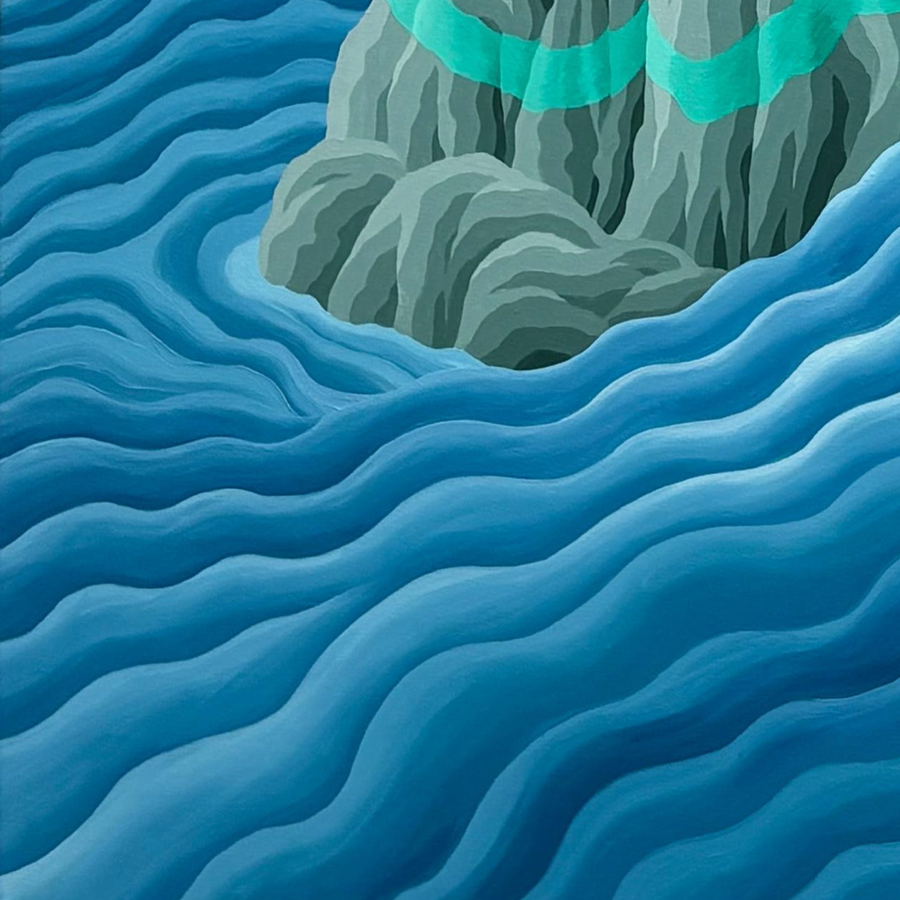 Michael Yaikel - Óleo sobre tela 'Roca y mar'