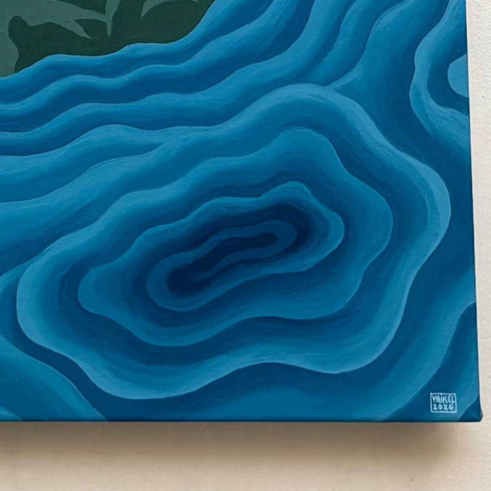 Bella obra del artista chileno Michael Yaikel, donde representa un paisaje clásico de la costa con su estilo especial y característico de crear la sensación de movimiento a partir del juego de tonos y contrastes de colores. La obra no se encuentra en tienda física, para verla contacta a la tienda.