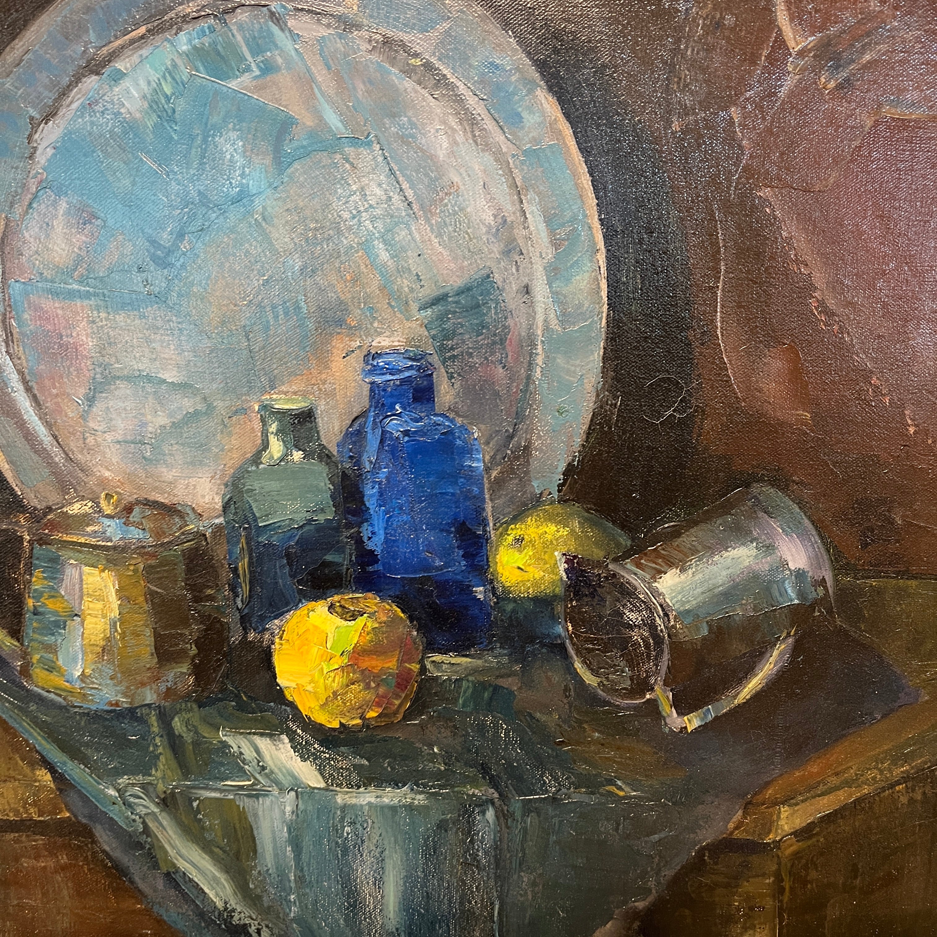 Firma Ilegible - Óleo sobre tela ‘Bodegón limones y plaqué’