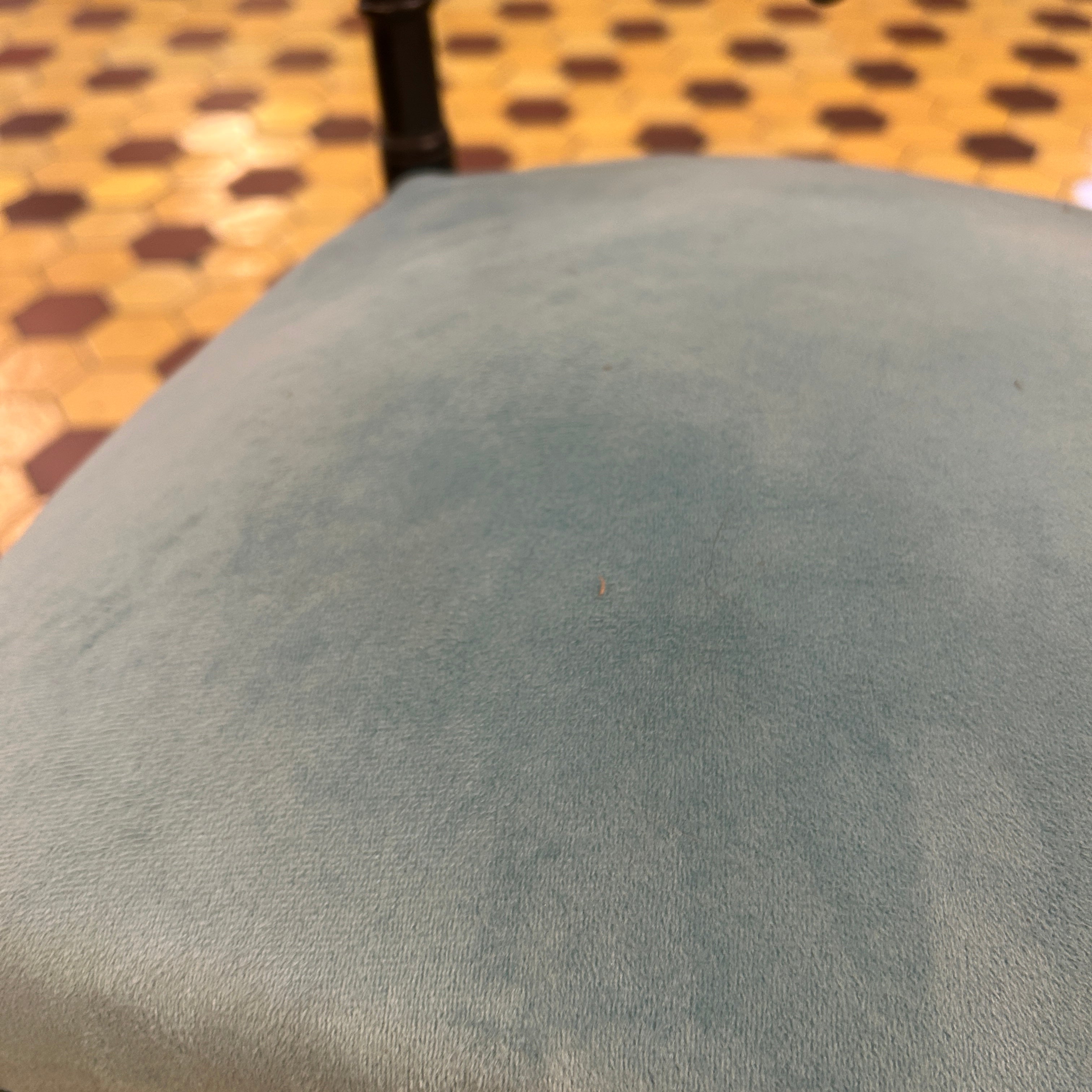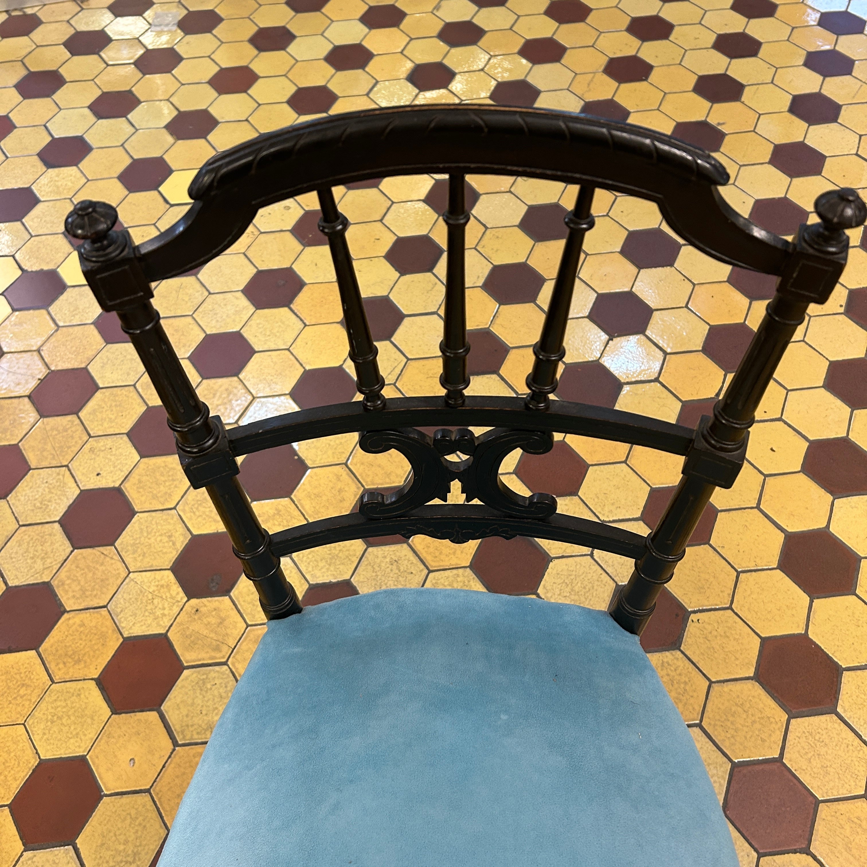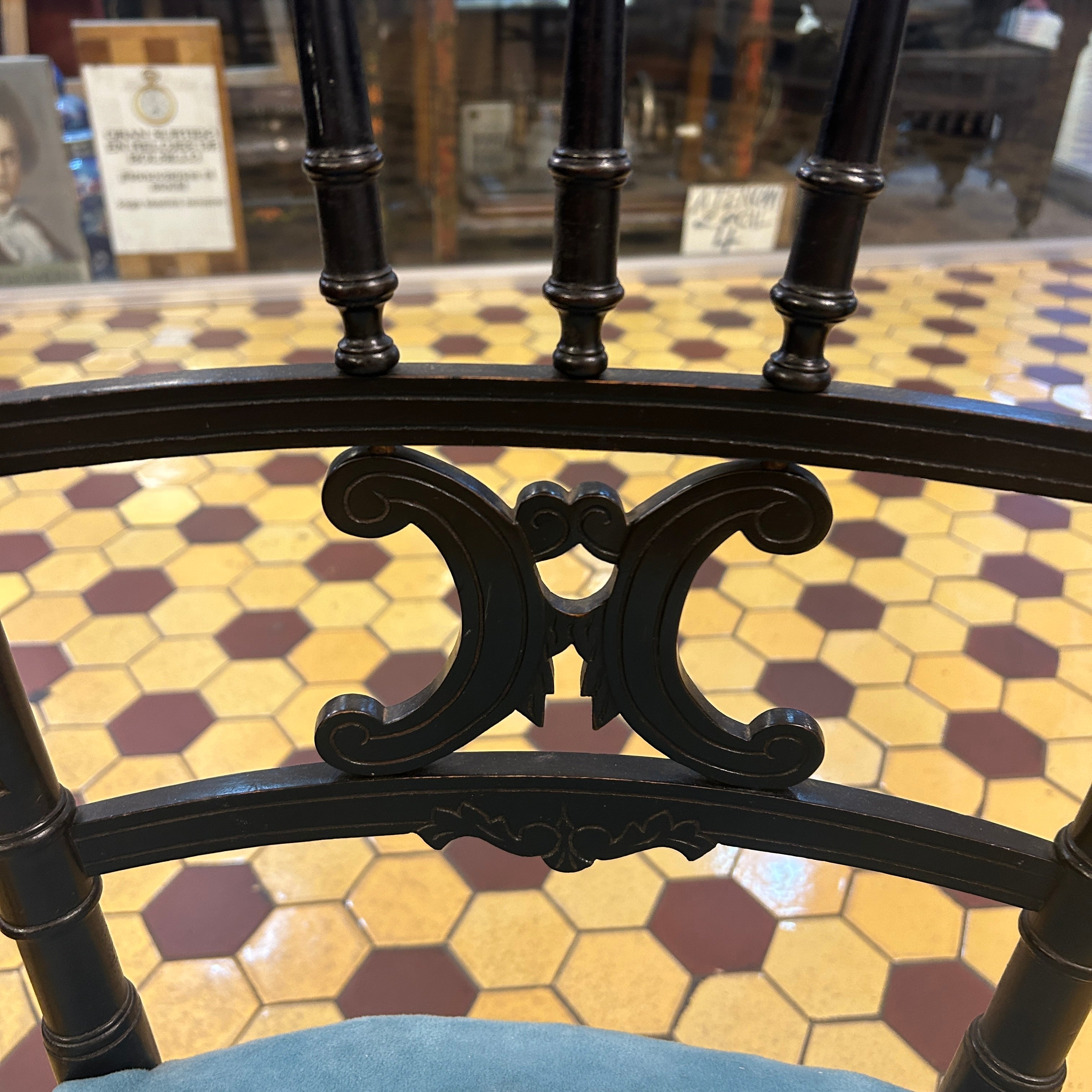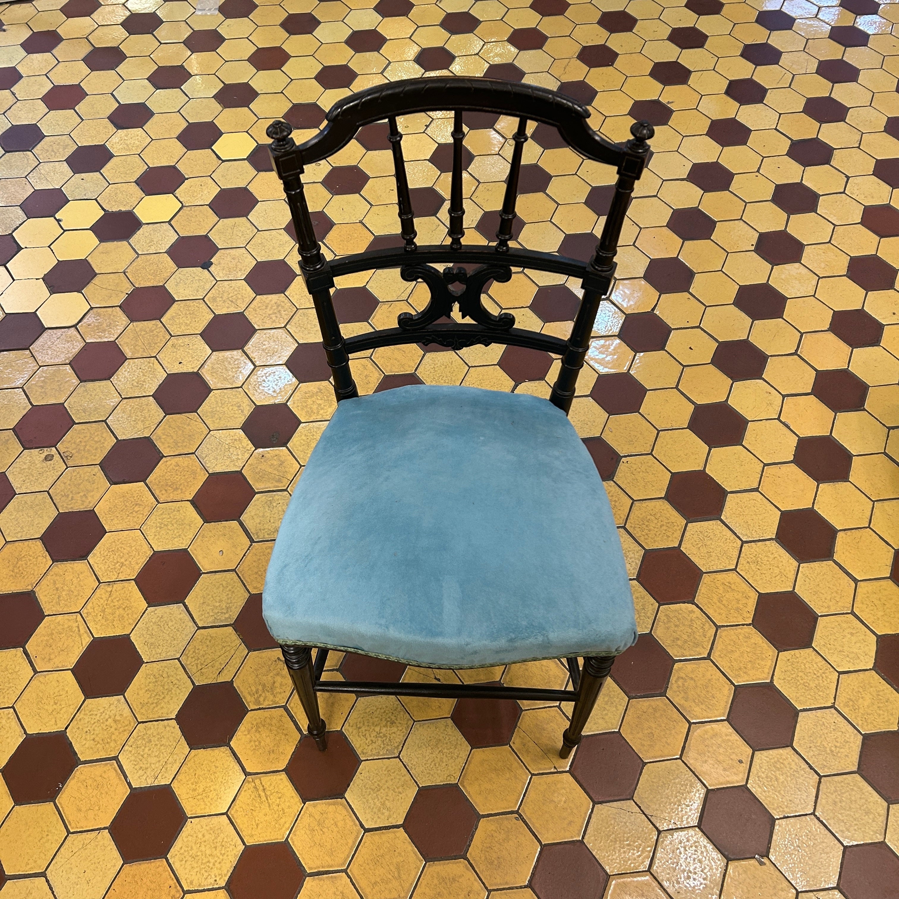 Pareja de sillas francesas Napoleon III lacadas tapiz terciopelo turquesa