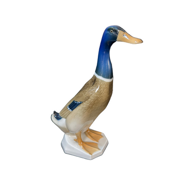 Delicada figura de un pato de porcelana de la prestigiosa marca alemana Lorenz Kuntsabtellung, pintada a mano donde destacan delicados detalles como sus ojos, el plumaje de su pecho o las patas palmeadas.