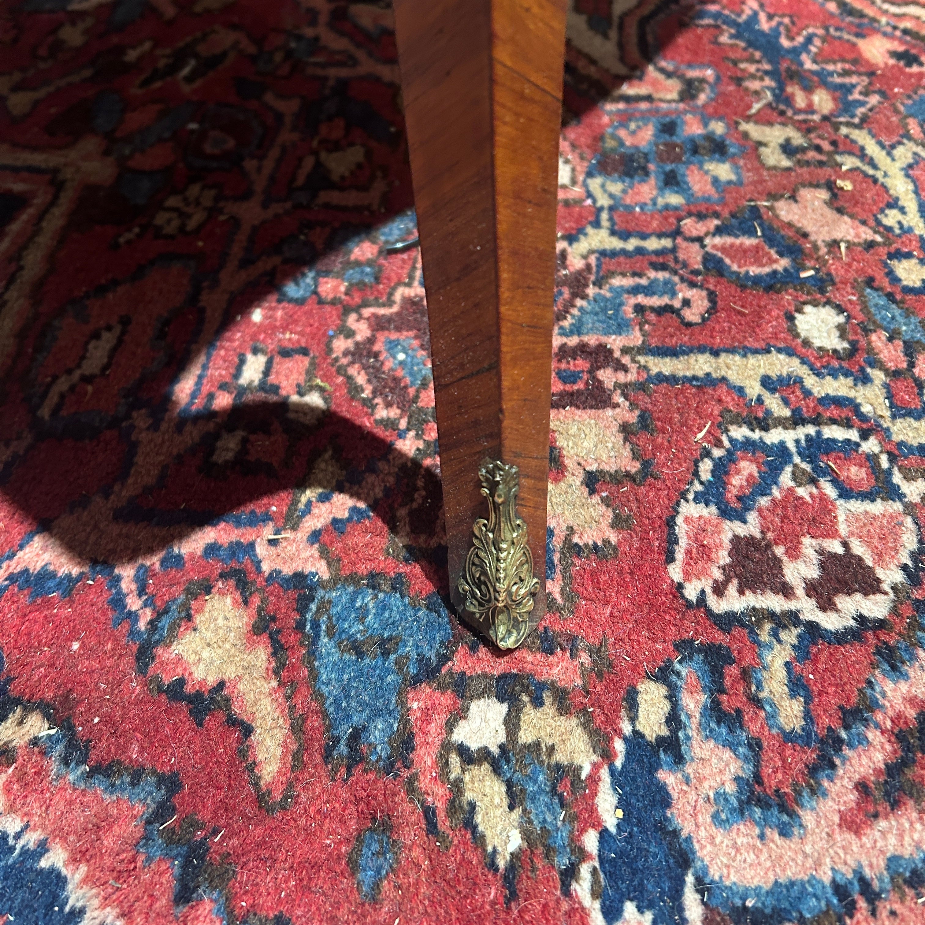 Maravilloso Costurero, peinador o joyero estilo Napoleón III con marquetería de palisandro y bois de rose representando follaje. Tapa con espejo, interior con enchapado de raíz de olmo, cajón frontal y un cajón tipo costurero debajo. Decoración de latón grabado 'EC'. Francia, 1930s.
