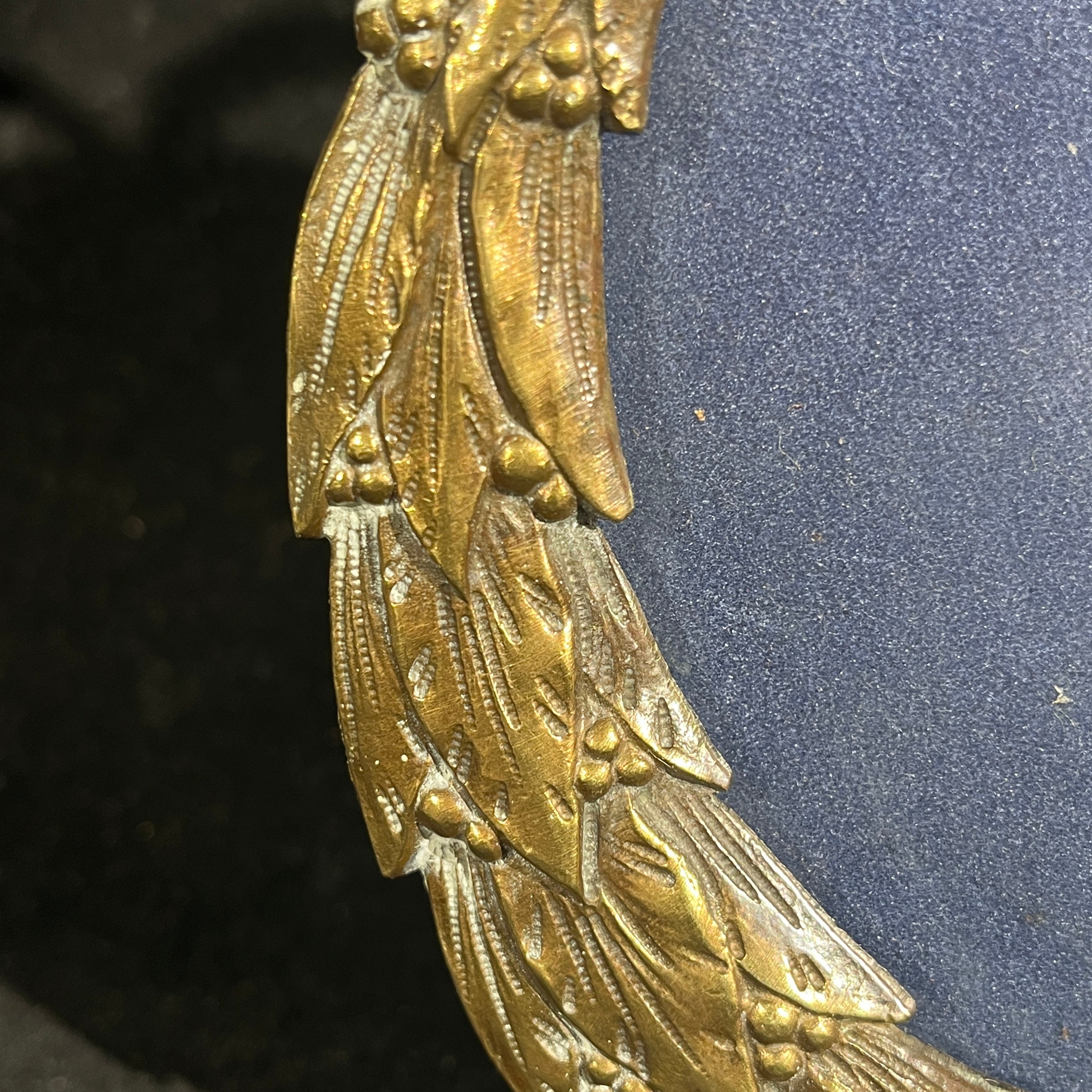 Portarretratos circulares en bronce diseño de guirnalda y cinto