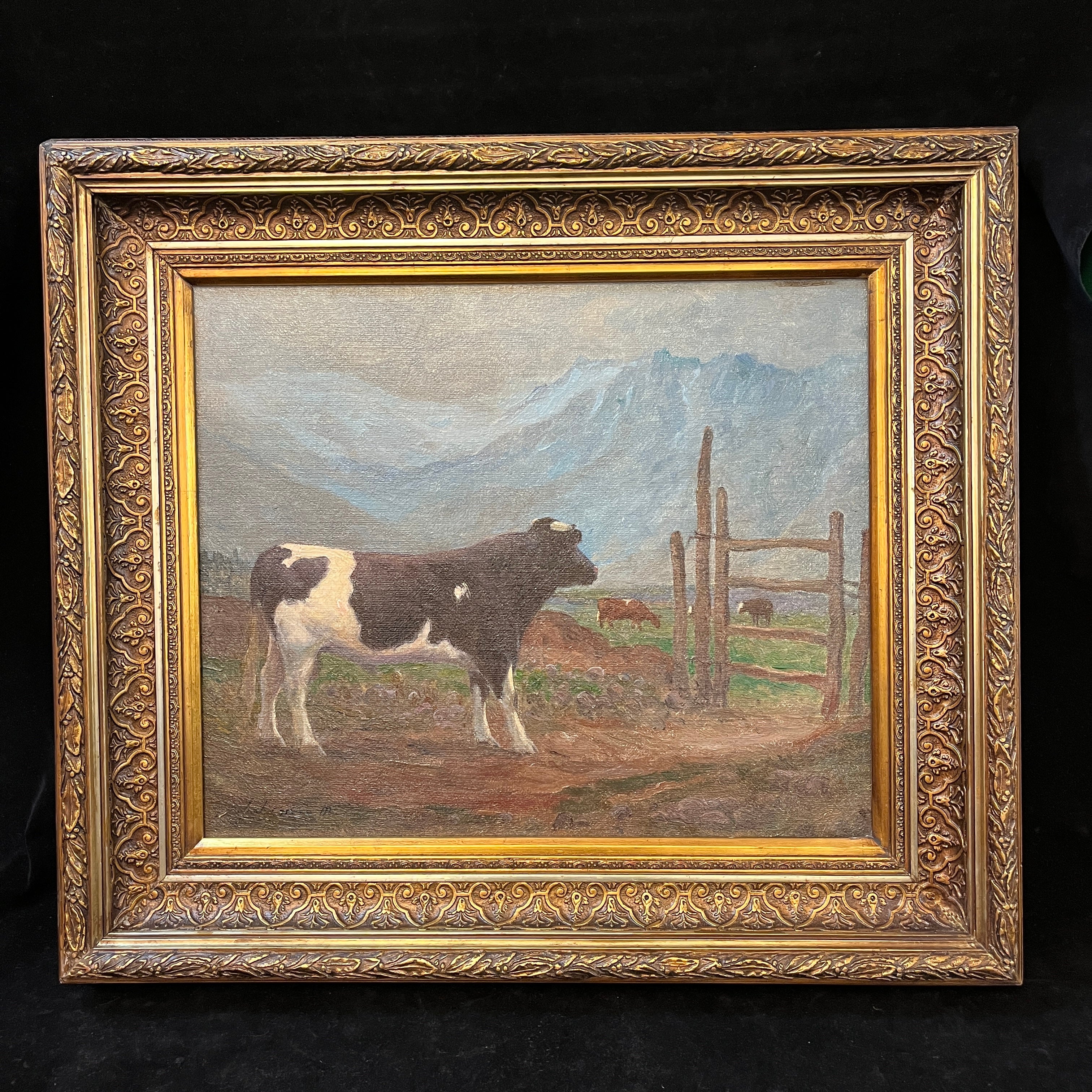 Rafael Correa - Óleo sobre tela ‘Vaca Observando la Cordillera'