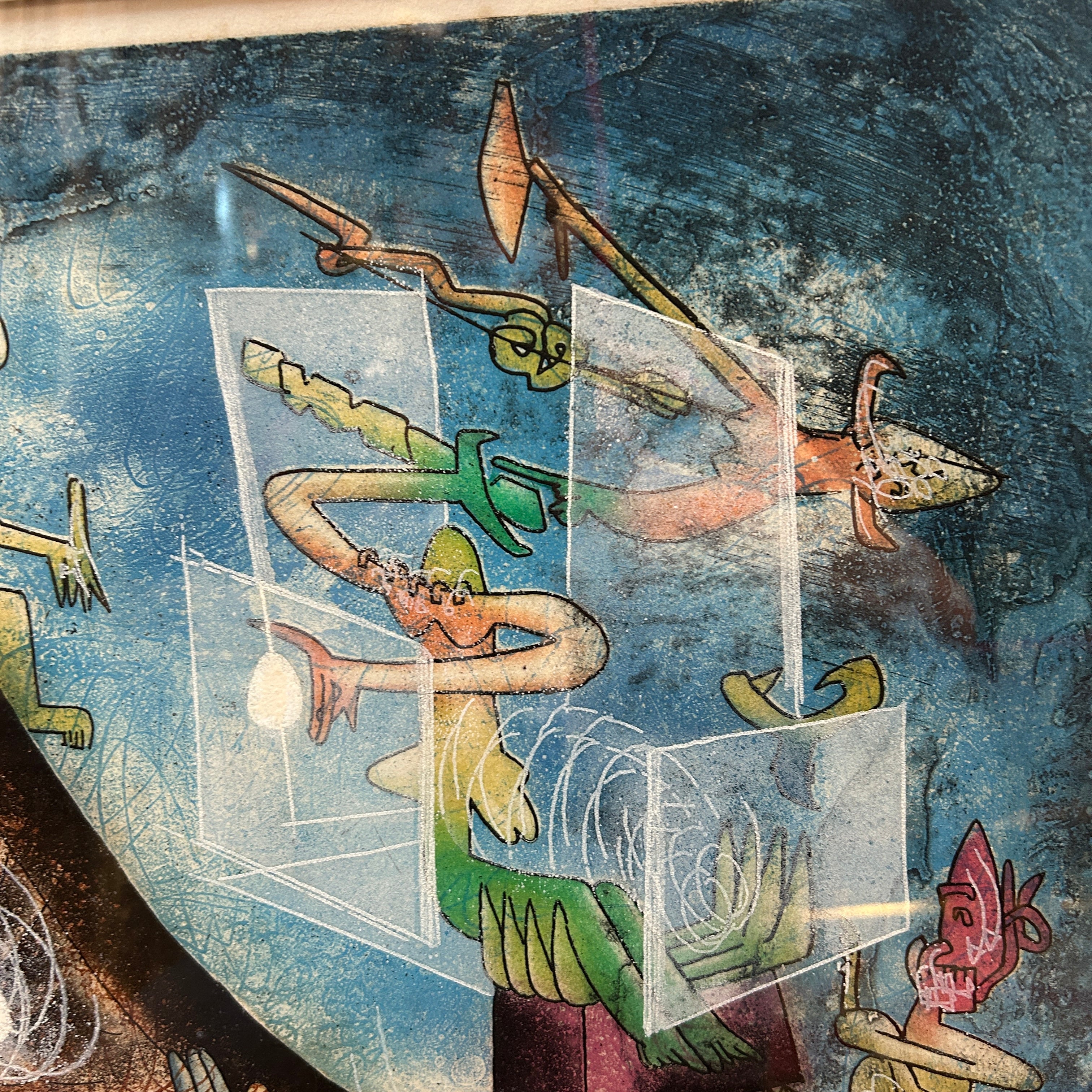 Grabado sobre papel de algodón, firmado y seriado, del reconocido artista chileno Roberto Matta. La obra, creada en 1983 y titulada ‘The Oppressors Les Oprime’, está hecha en técnica aguafuerte y aguatinta.