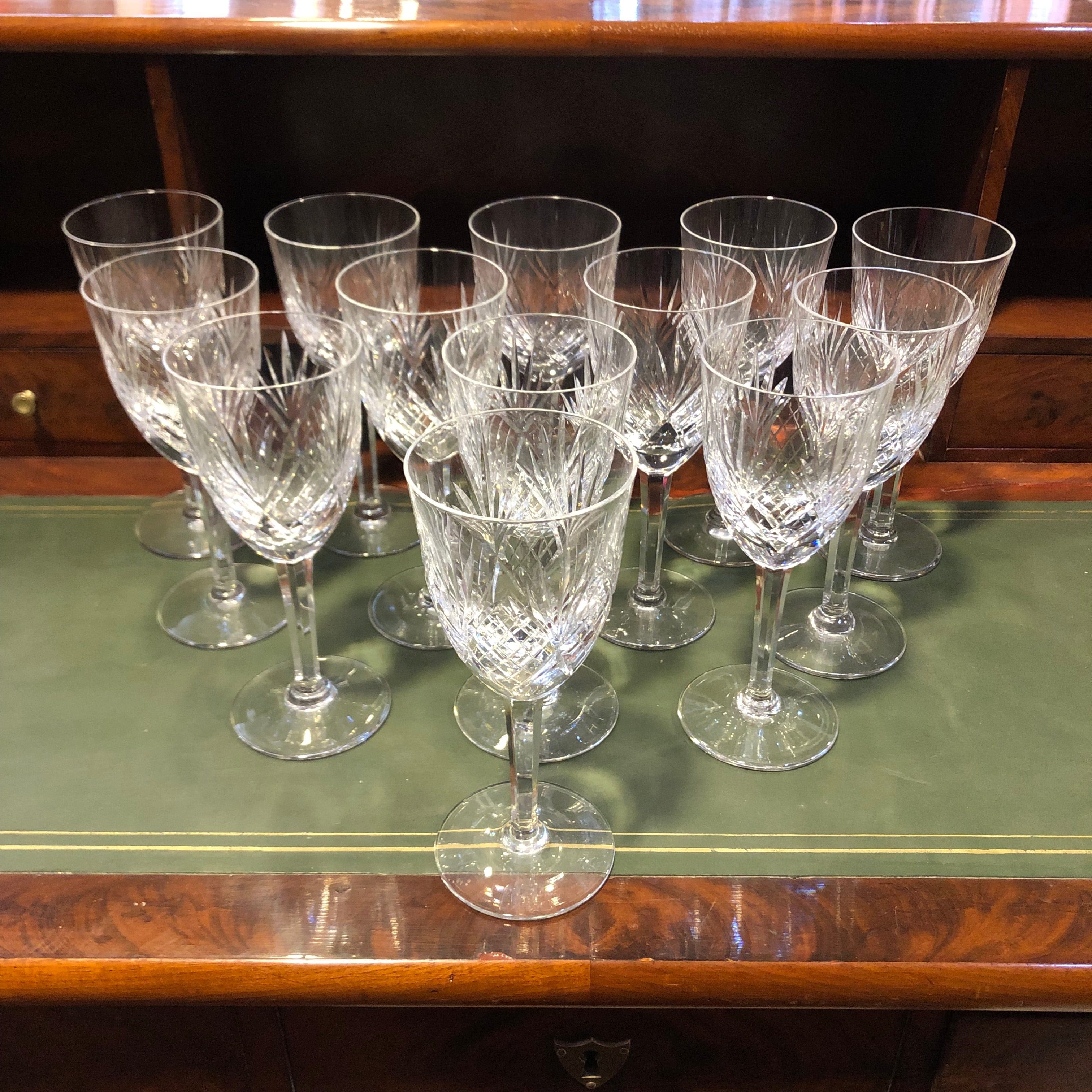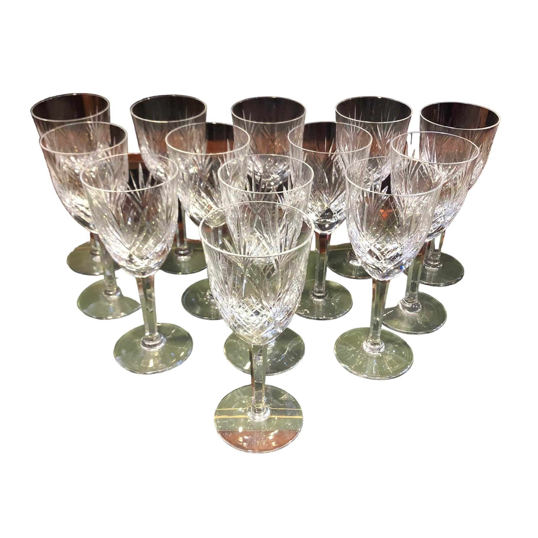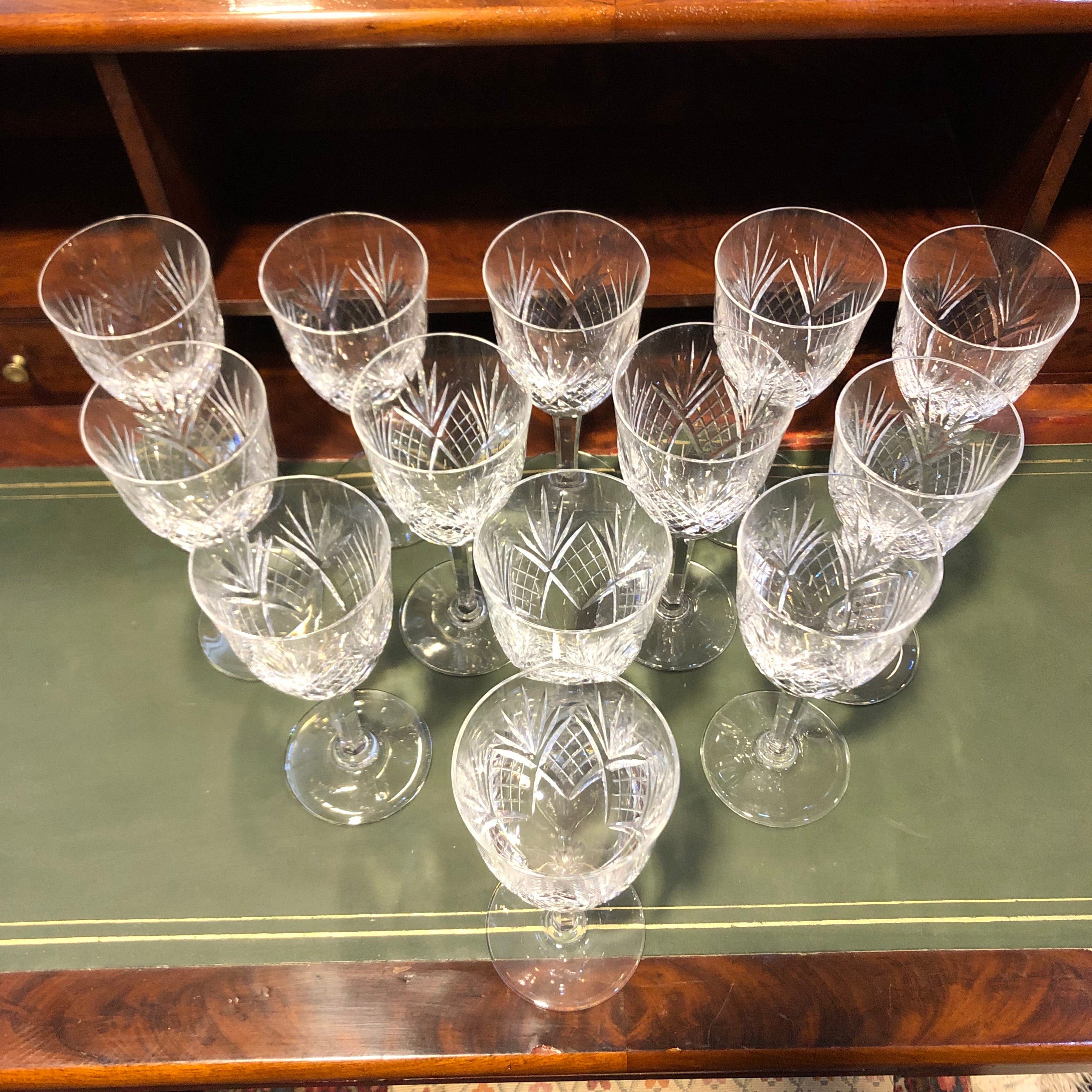 Hermoso y elegante set de 13 copas de cristal tallado para vino, de origen francés marca Lorraine.