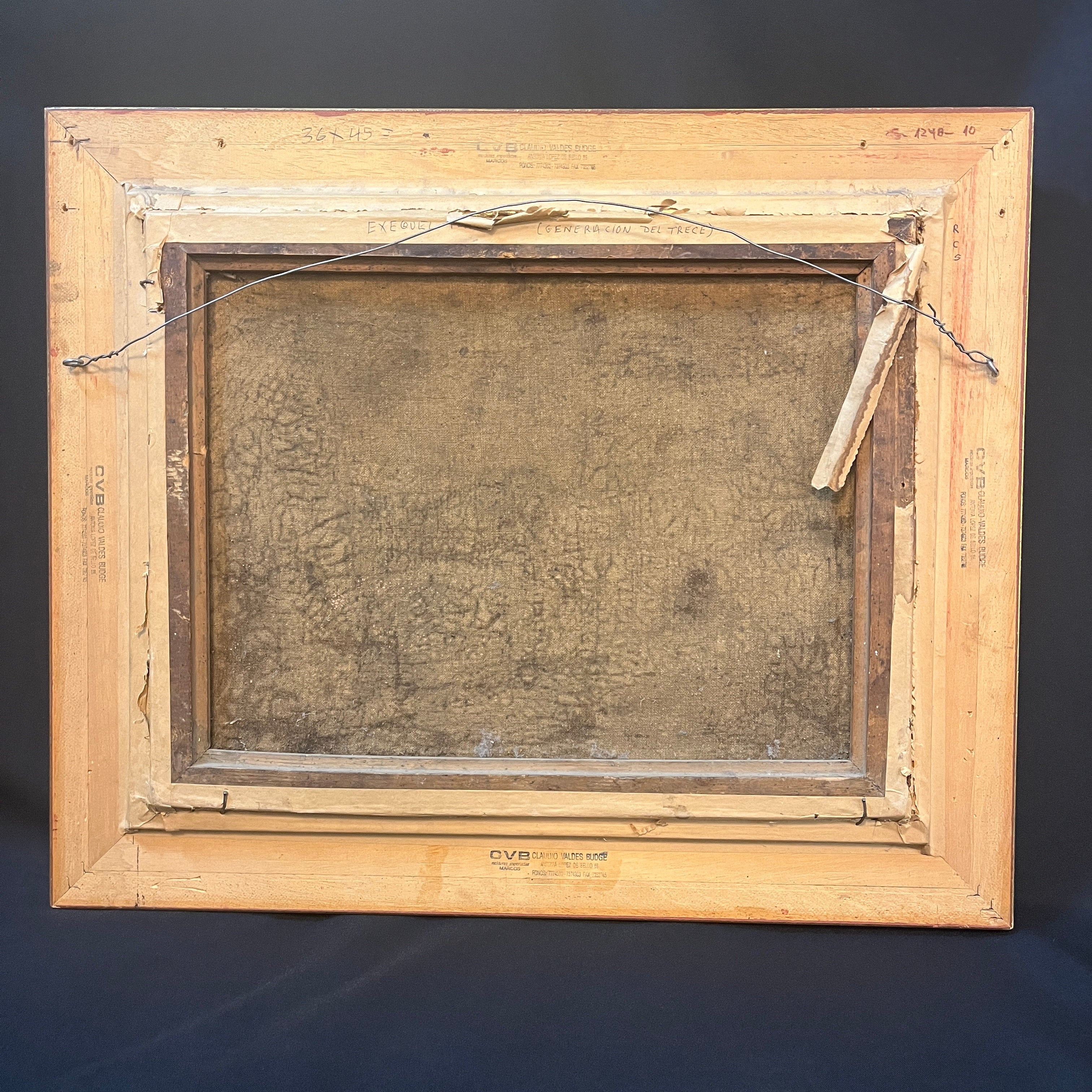 Dimensiones: Marco alto: 49 cm, ancho 59 cm, profundidad: 5 cm. Obra alto: 34 cm, ancho 44 cm.