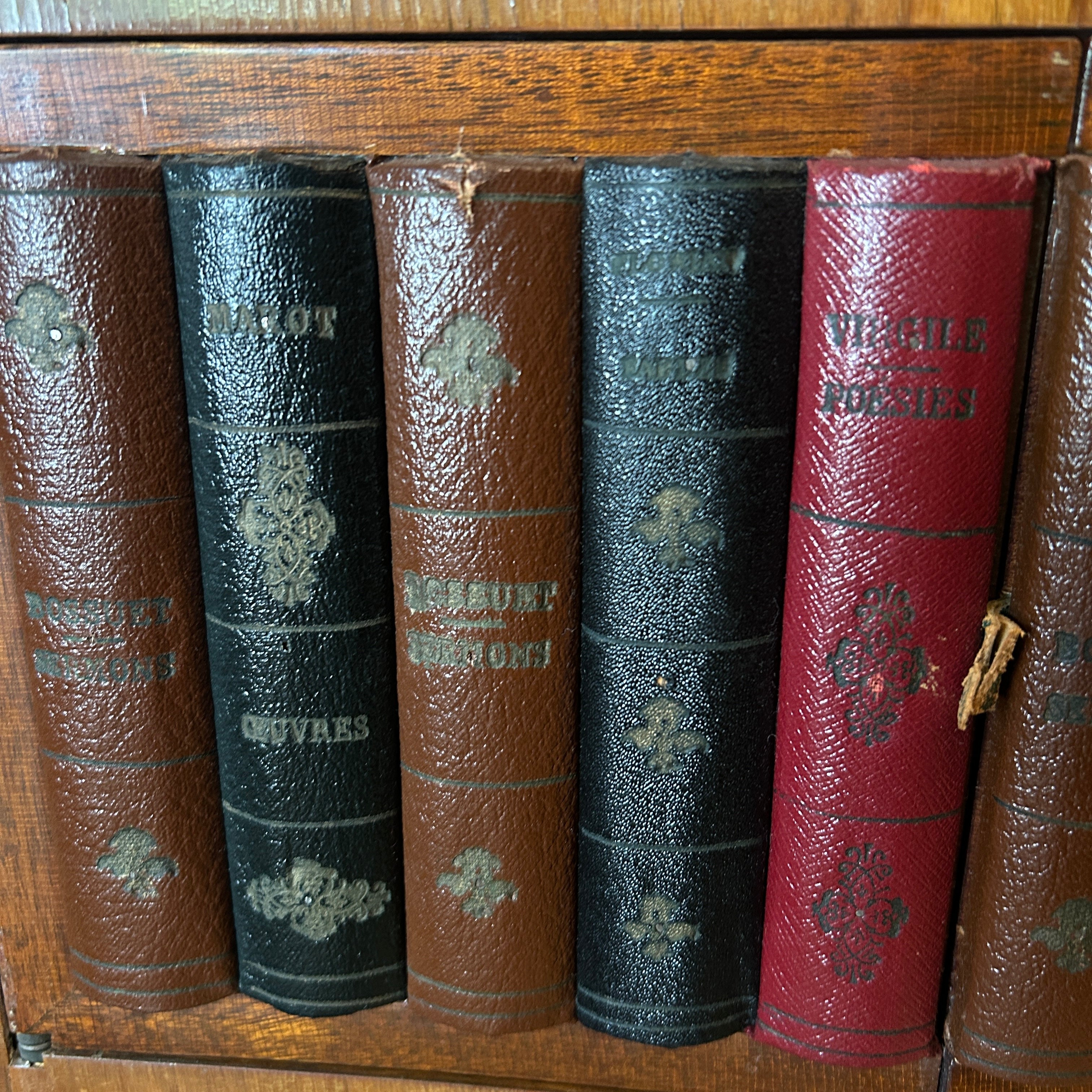 Velador Luis XVI enchapado bronce y cubierta de libros trampantojo