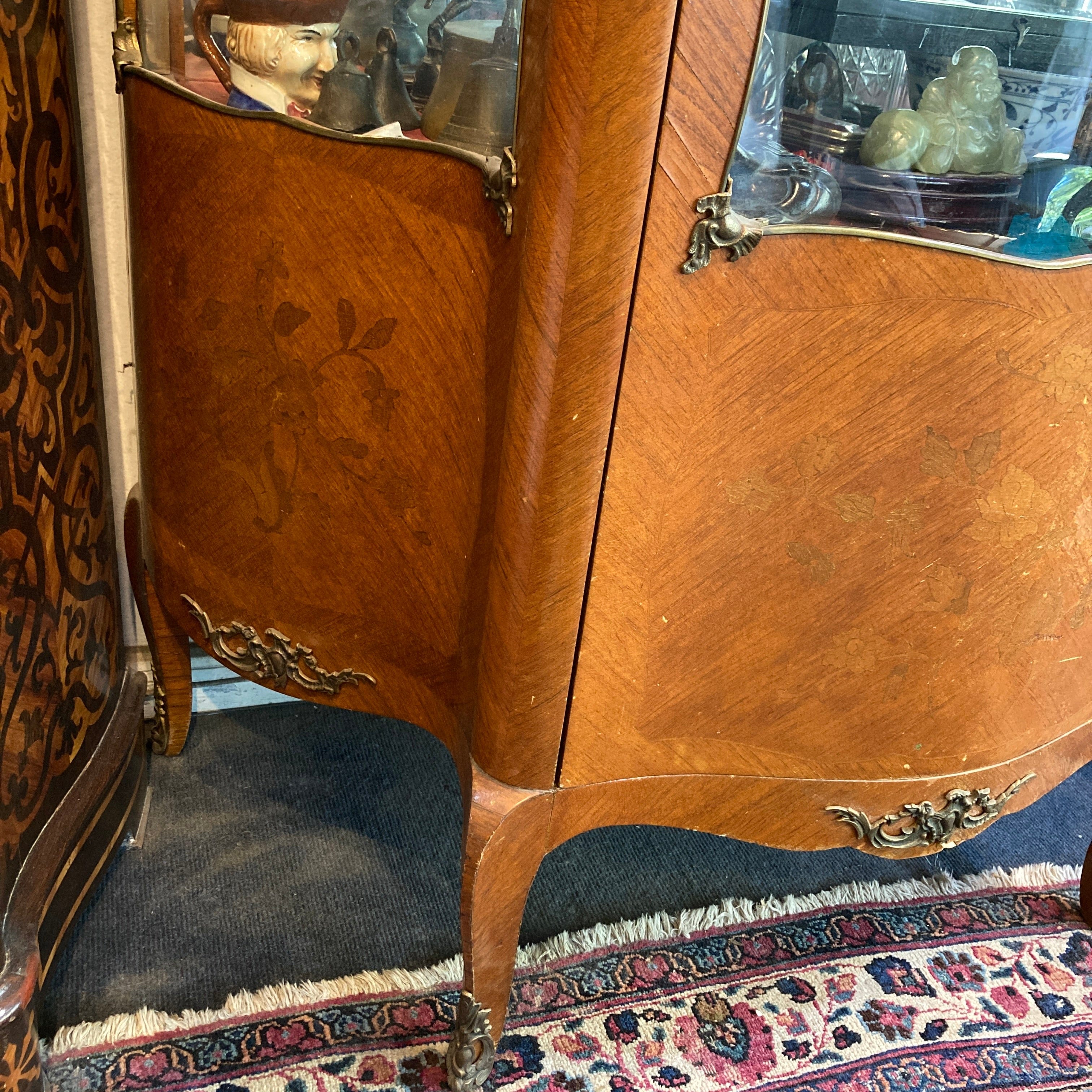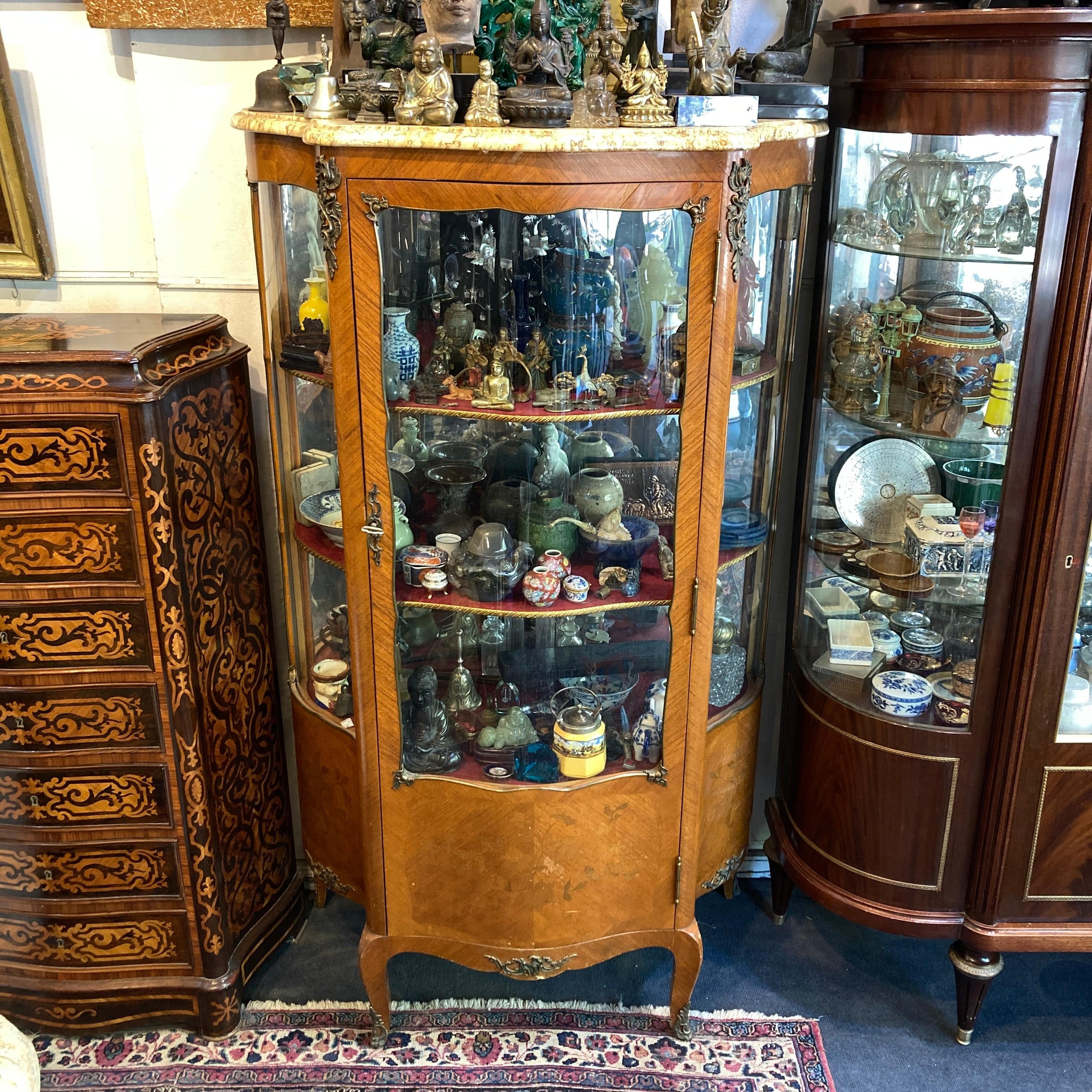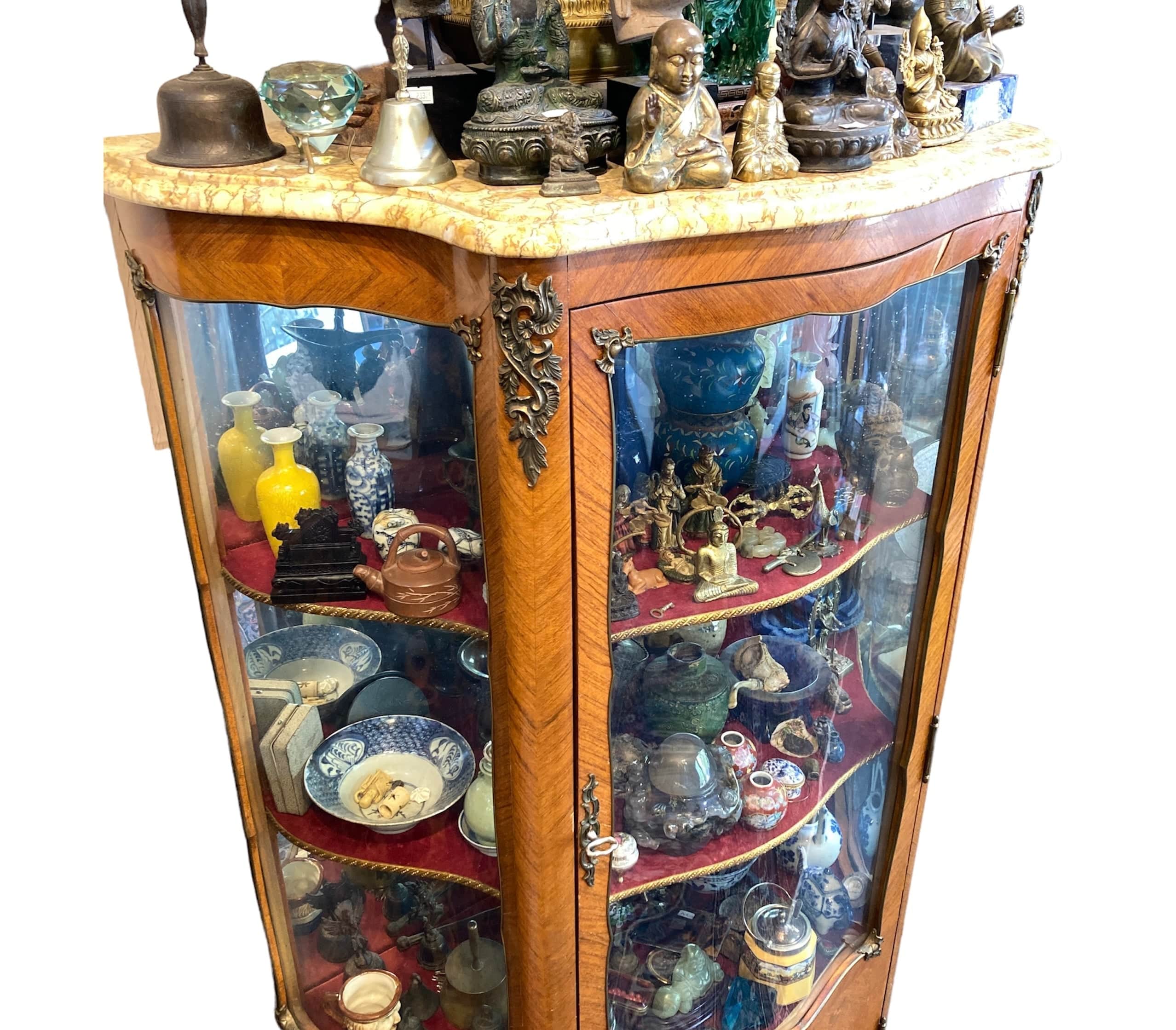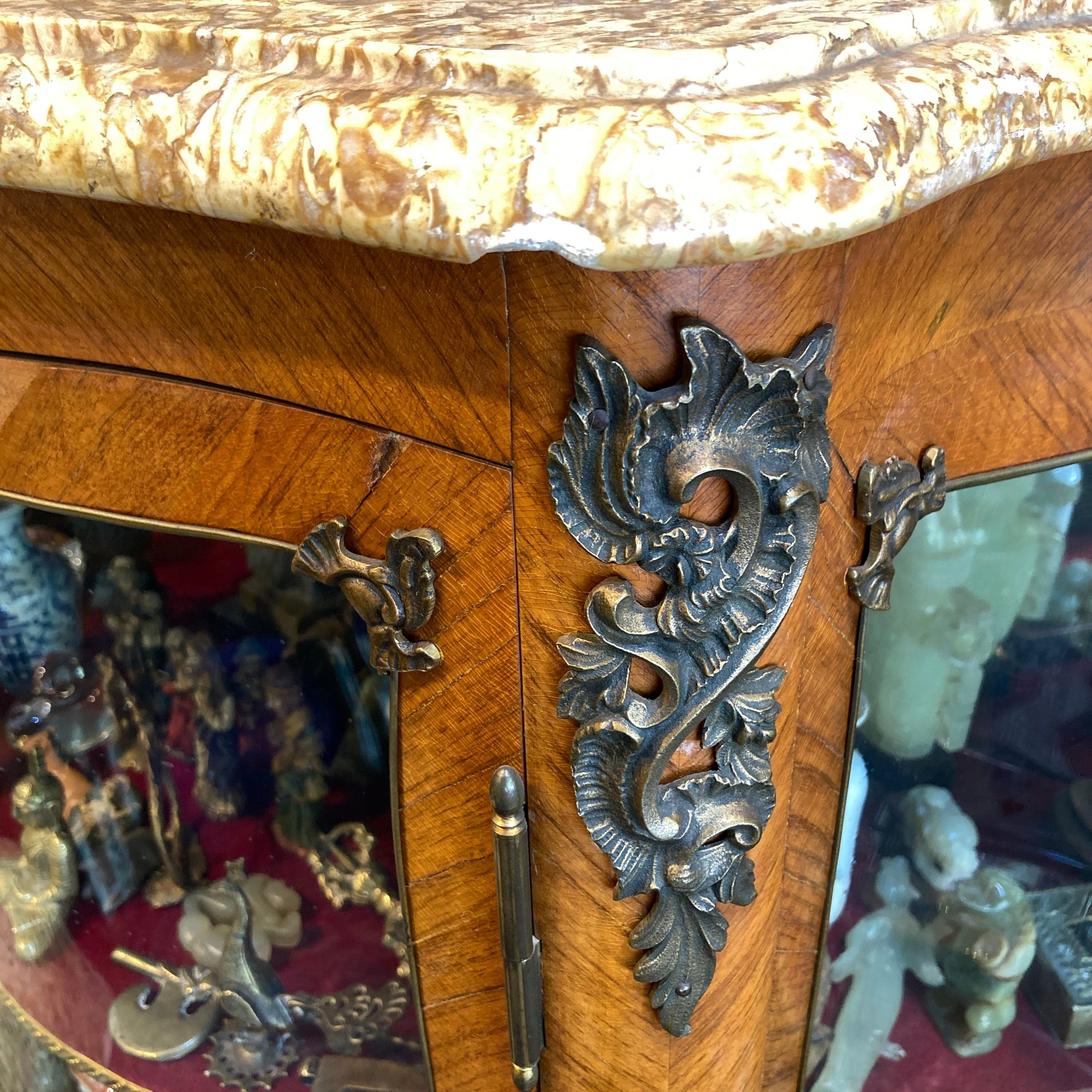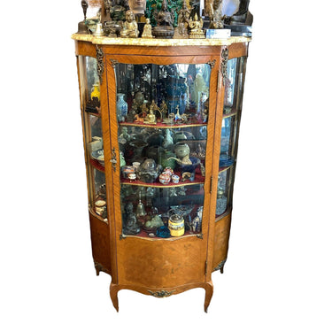 Vitrina de medio punto Luis XV bombé contra bombé y mármol