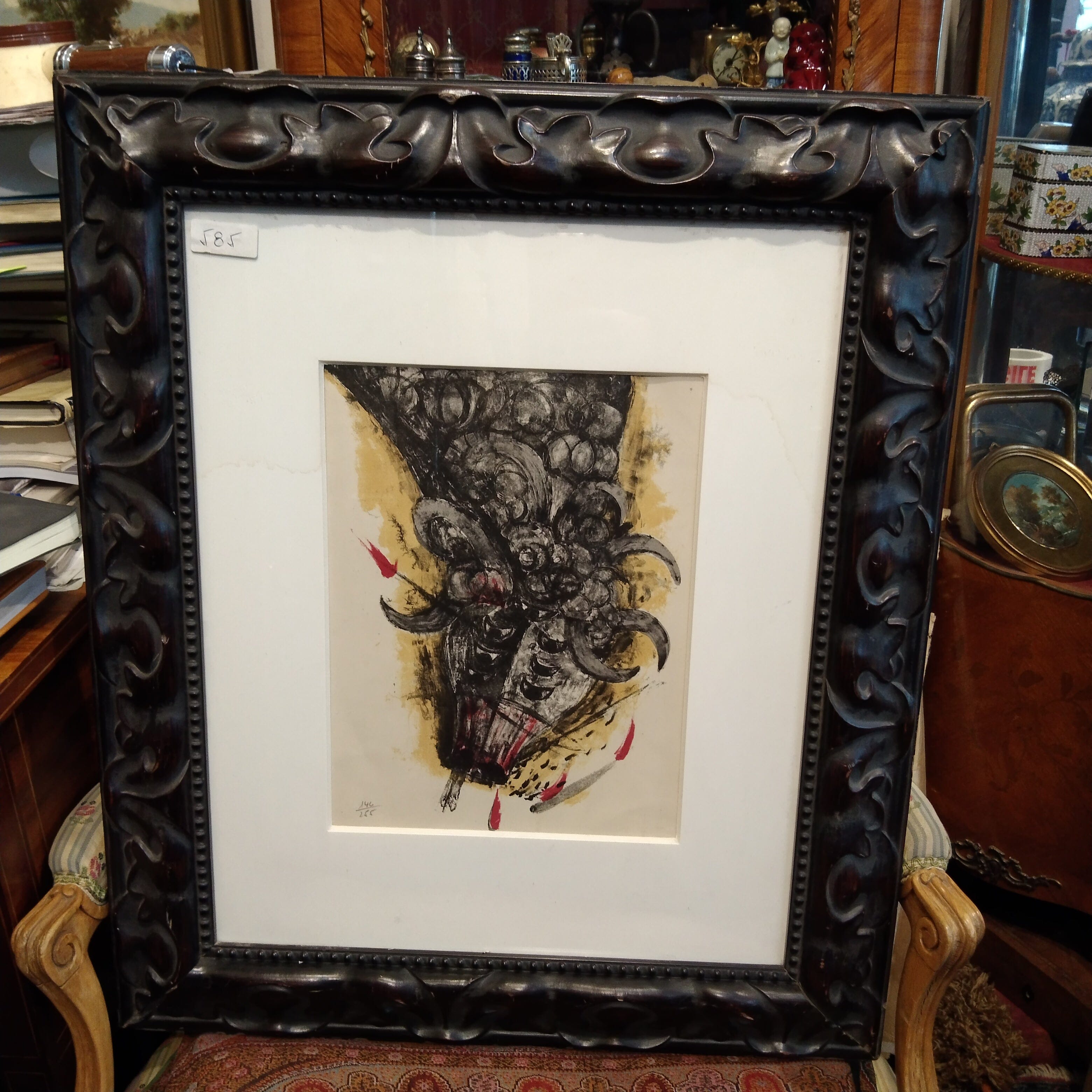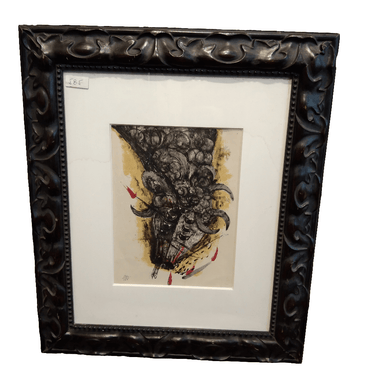 Grabado numerado del pintor mexicano Rufino Tamayo. La pieza se encuentra enmarcada en una bella madera tallada a mano en un color oscuro.